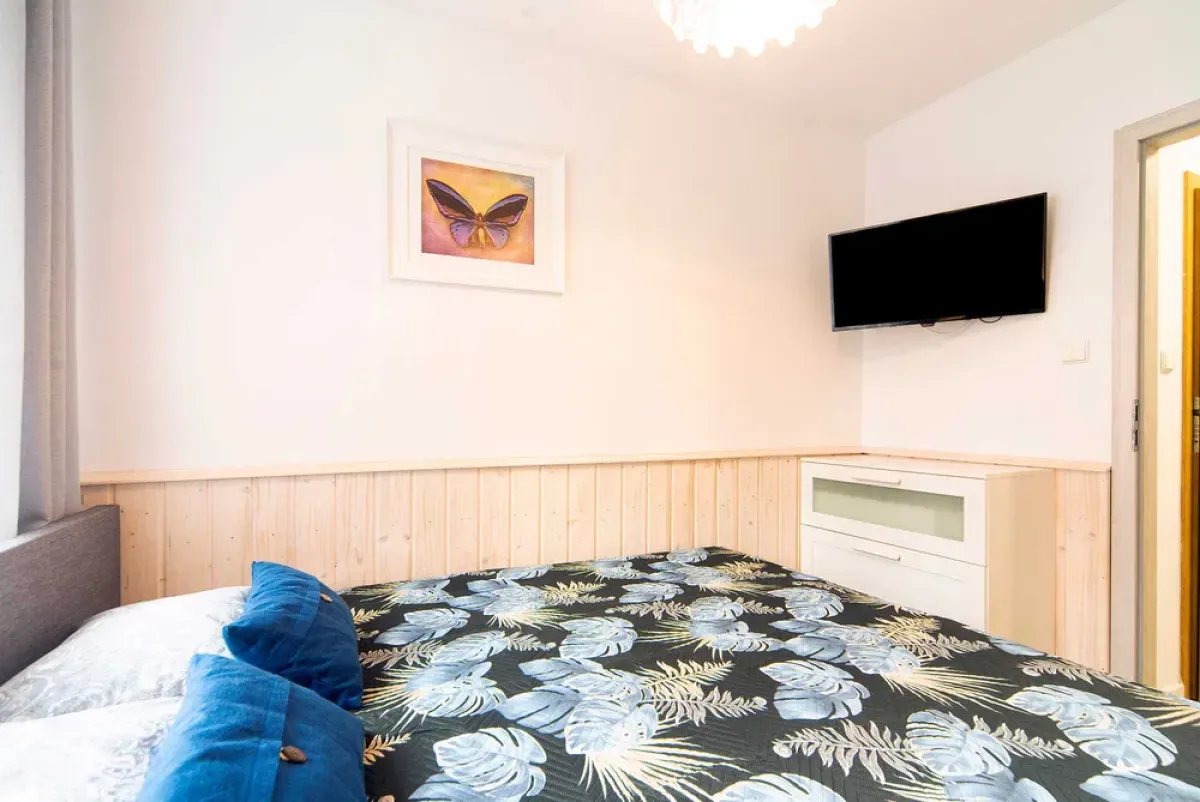 Udogodnienia: tv, żelazko, deska do prasowania, odkurzacz, duża szafa na przedpokoju WiFi, parking na jeden samochód, meble balkonowe.
