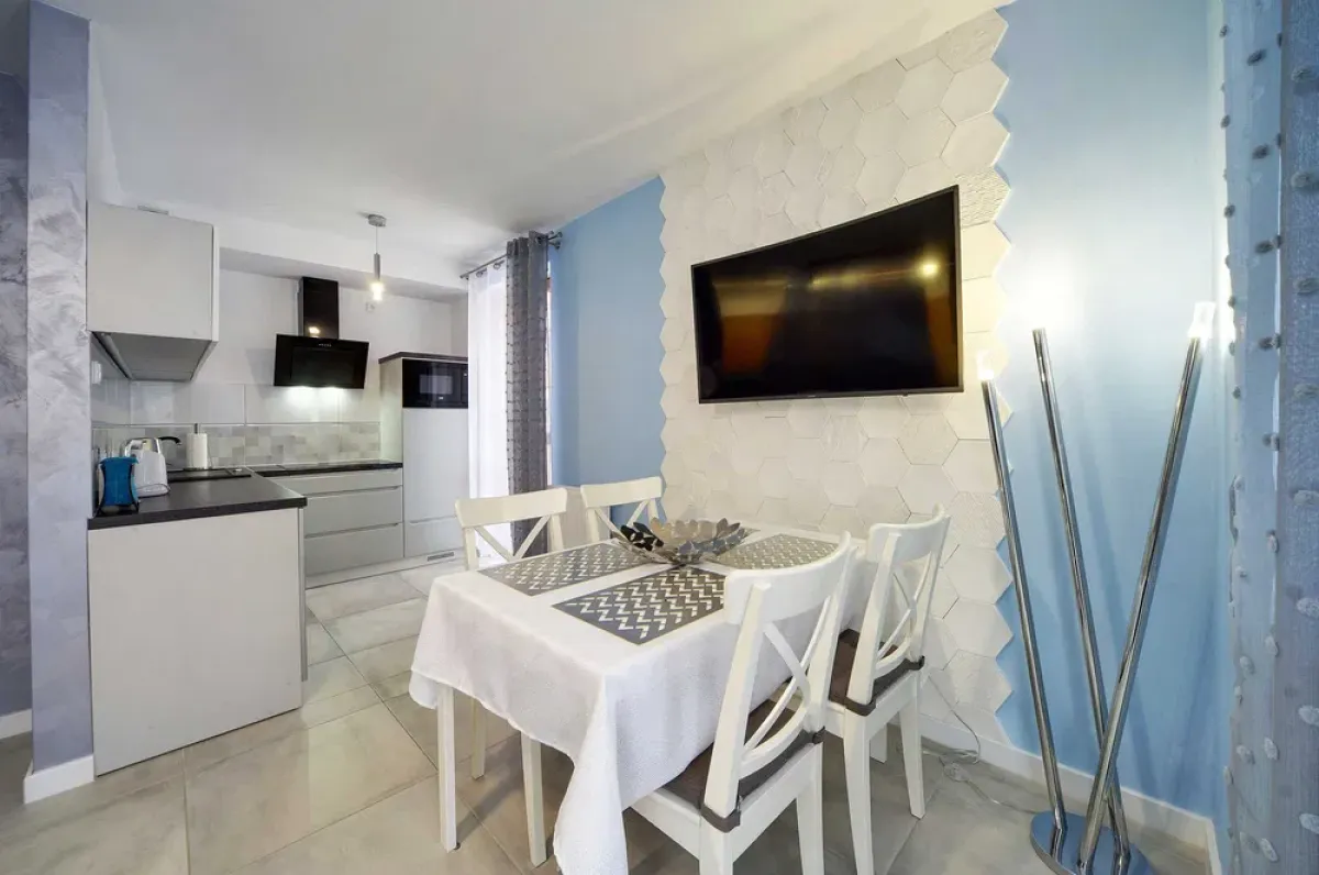 Apartament jest przeznaczony dla 4 osób, jego powierzchnia to 38m. Jasny i komfortowy apartament z przestronnym pokojem dziennym, połączonym z bardzo dobrze wyposażonym aneksem kuchennym.