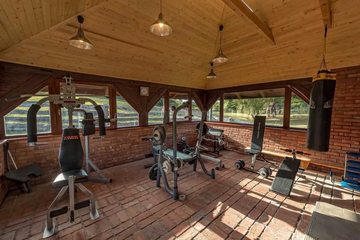 Do wynajęcia ogromny dom 400m2 (5 pokoi z łazienkami, 2 pokoje bez łazienki, salon kuchnia, bilard) dla nawet 24 osób z dojściem do jeziora, ogród 2ha, jacuzzi, sauna, boisko, staw kąpielowy, wiata grillowa, ognisko, plac zabaw, domek na drzewie, trampolina, boisko, kort tenisowy, siłownia.
