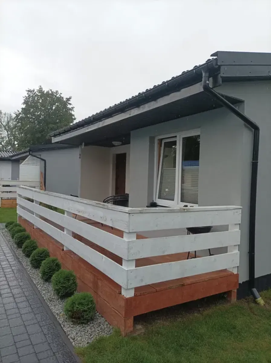 Domek ma 2 sypialnie aneks kuchenny z rozkładaną sofą taras darmowy parking.