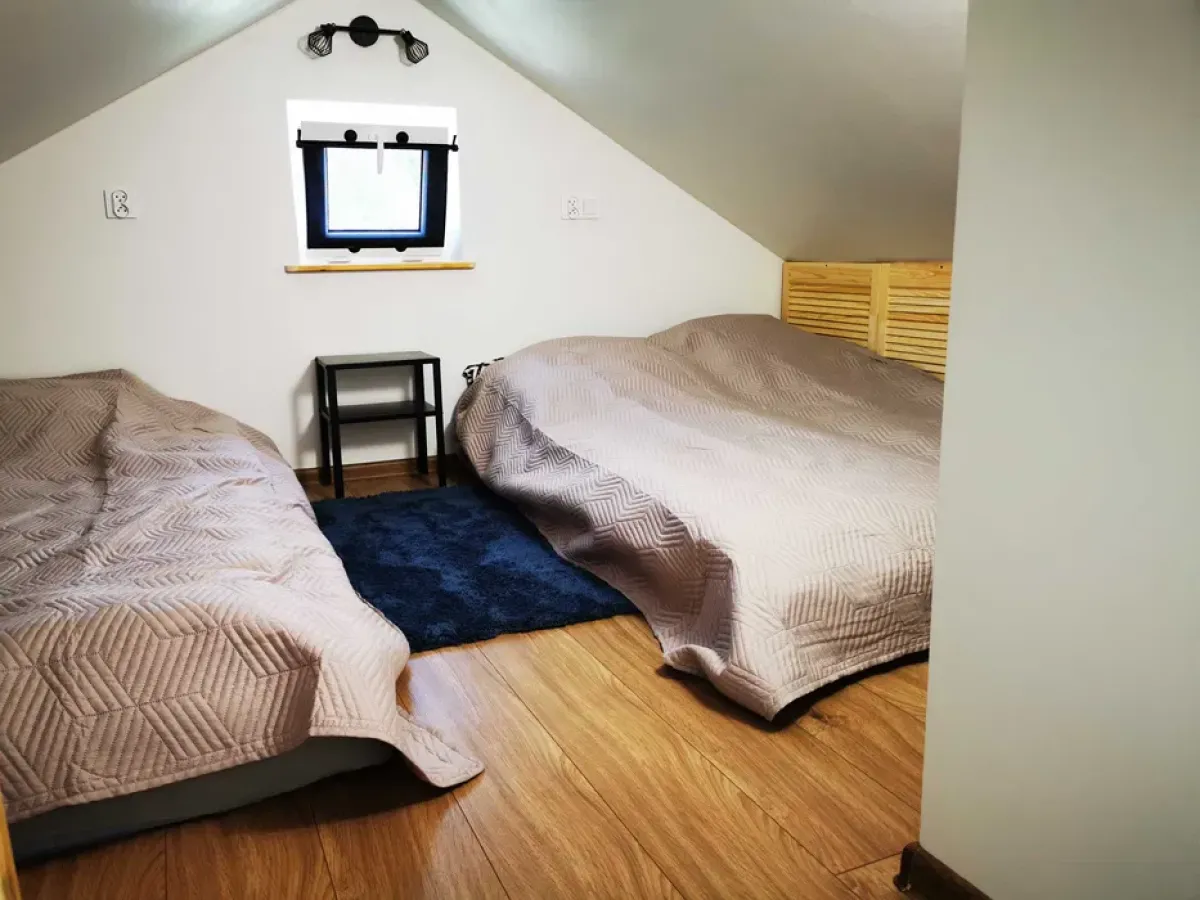 Na antresoli znajdują się dwa dwuosobowe materace.