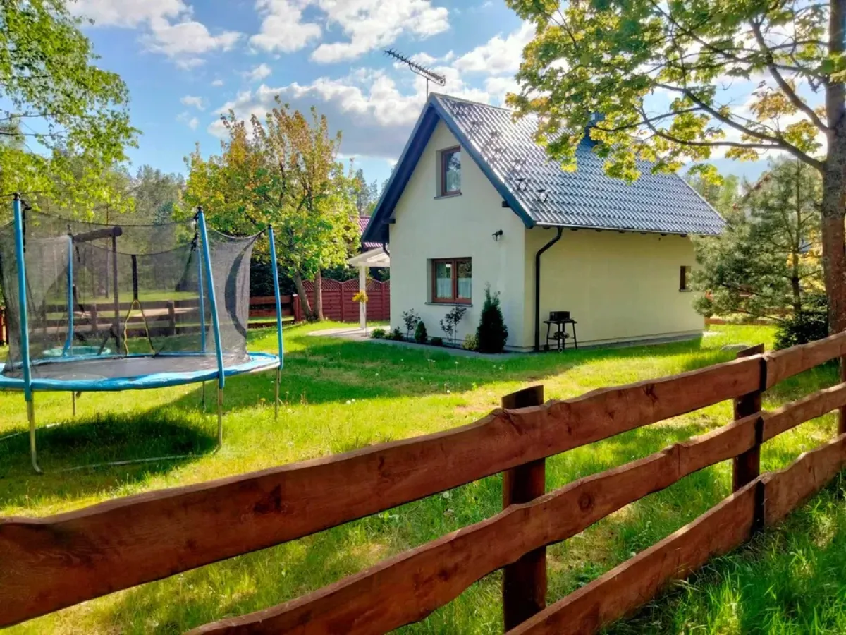Przed domkiem bezpośrednie wyjście na las, duże obejście meble ogrodowe, hamak , trampolina, huśtawki, zjeżdżania, grill, parking.