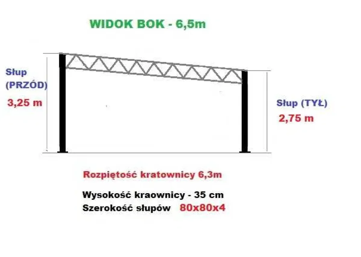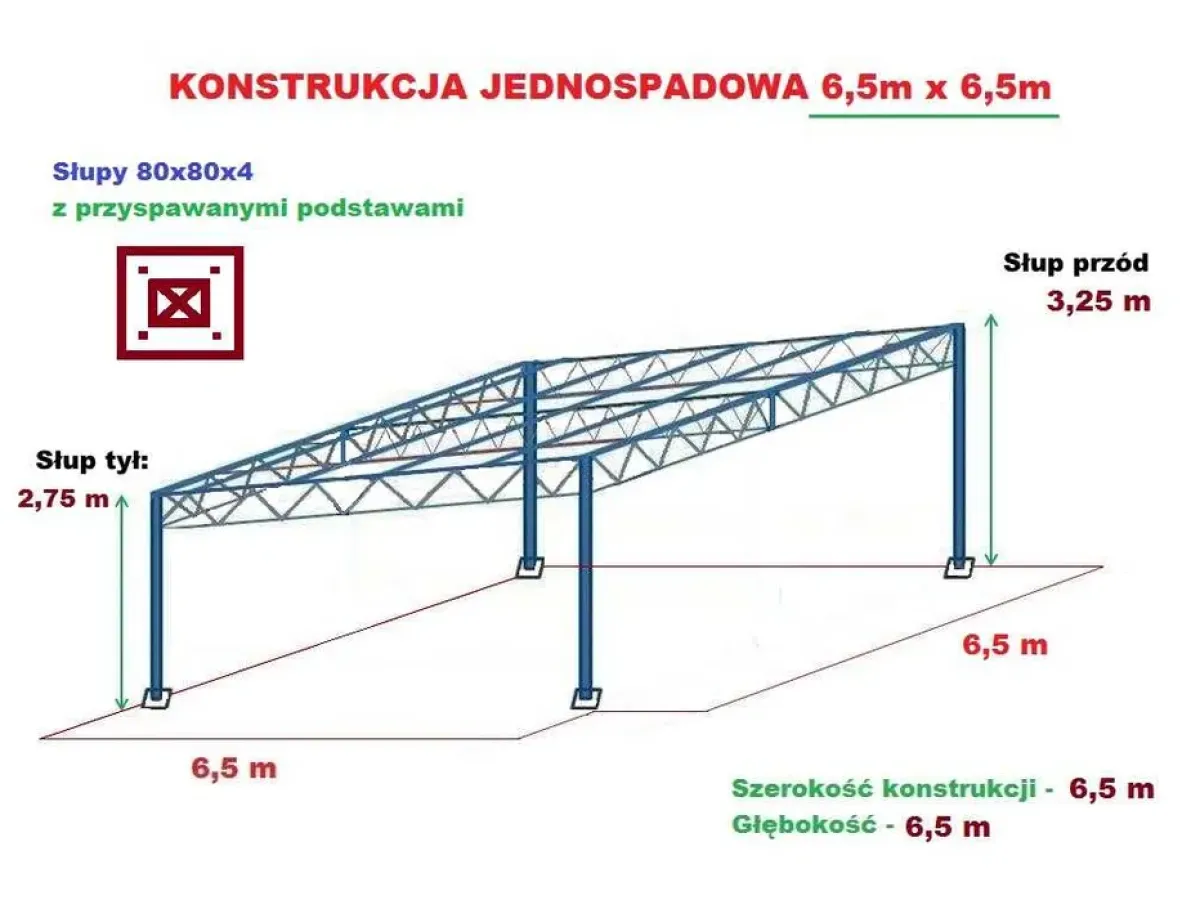 Konstrukcja skręcana wiata rolna garaż Hala Magazyn Blacha 6,5 x 6,5m