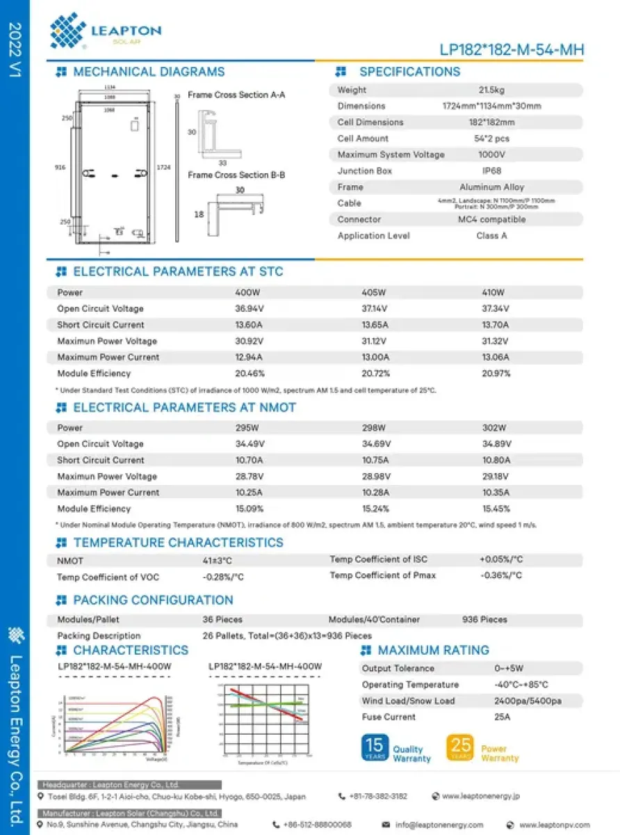 Leapton Solar to zintegrowana firma fotowoltaiczna skupiająca się na ogniwach słonecznych, modułach, systemach zasilania, produkcji i sprzedaży. Główna siedziba znajduje się w Kobe w Japonii i została założona w 2012 roku. Firma wybudowała elektrownie słoneczne w całej Japonii w oparciu o własne zasoby. Wraz z ciągłym rozwojem i rozszerzaniem działalności, w 2015 roku powstał oddział w Tokio, który koncentruje się na sprzedaży produktów fotowoltaicznych. Moduły Leapton Solar znajdują się na liście Tier 1.