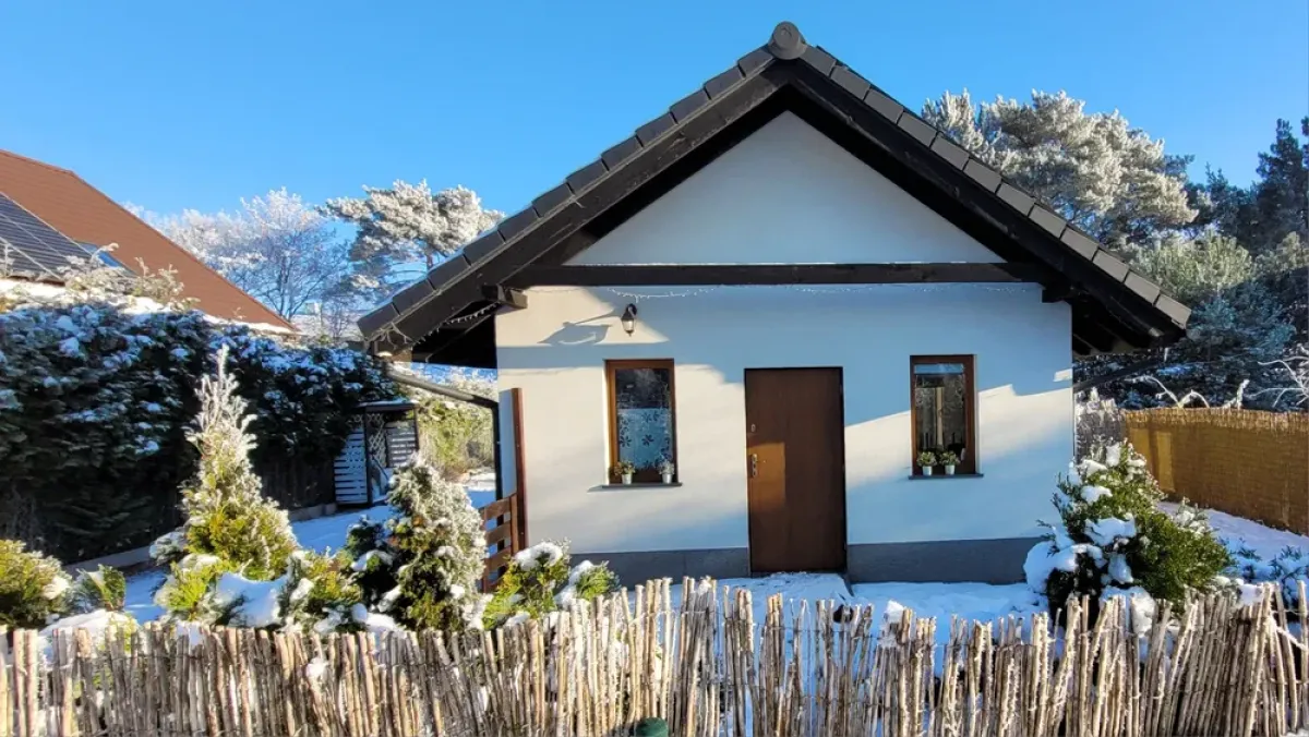 Domek składa się z pokóju z aneksem kuchenym oraz sypialni.