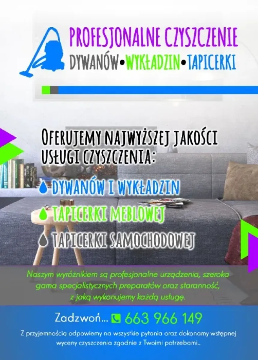 Używamy najlepszych urządzeń oraz chemii dostępnych na rynku, dzięki czemu pranie jest bardzo skuteczne, szybkie a czyszczone powierzchnie pozbawione zapachu...