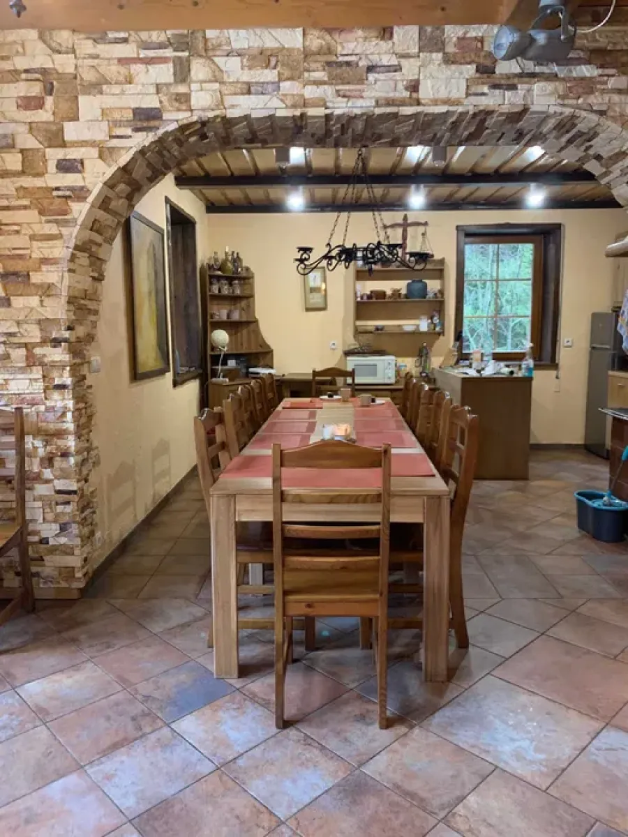 Nasz dom posiada również dwie łazienki z prysznicem, sałne i wyposażoną kuchnię, w której znajdziesz wszystko, czego potrzebujesz do przygotowania posiłków. Kuchnia jest wyposażona w kuchenkę, czajnik elektryczny, kuchenkę mikrofalową, lodówkę, zmywarkę oraz duży stół, idealny do wspólnych posiłków i spotkań. W okresie wakacyjnym basen ogrodowy