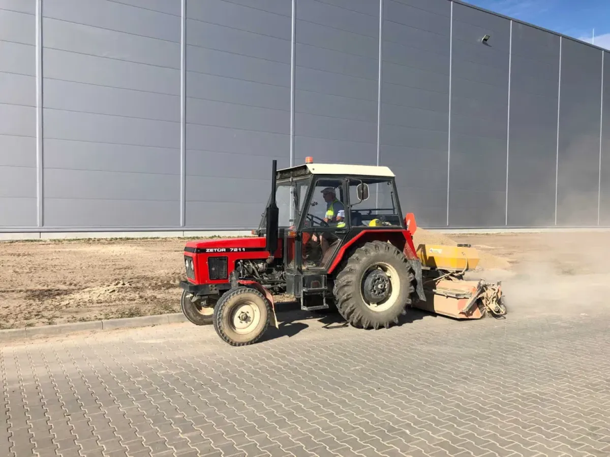 Oferujemy usługi mechanicznego zamiatania dróg, placów, parkingów ciągnikiem z zamiatarką i ciągnikiem z myjką ciśnieniową.