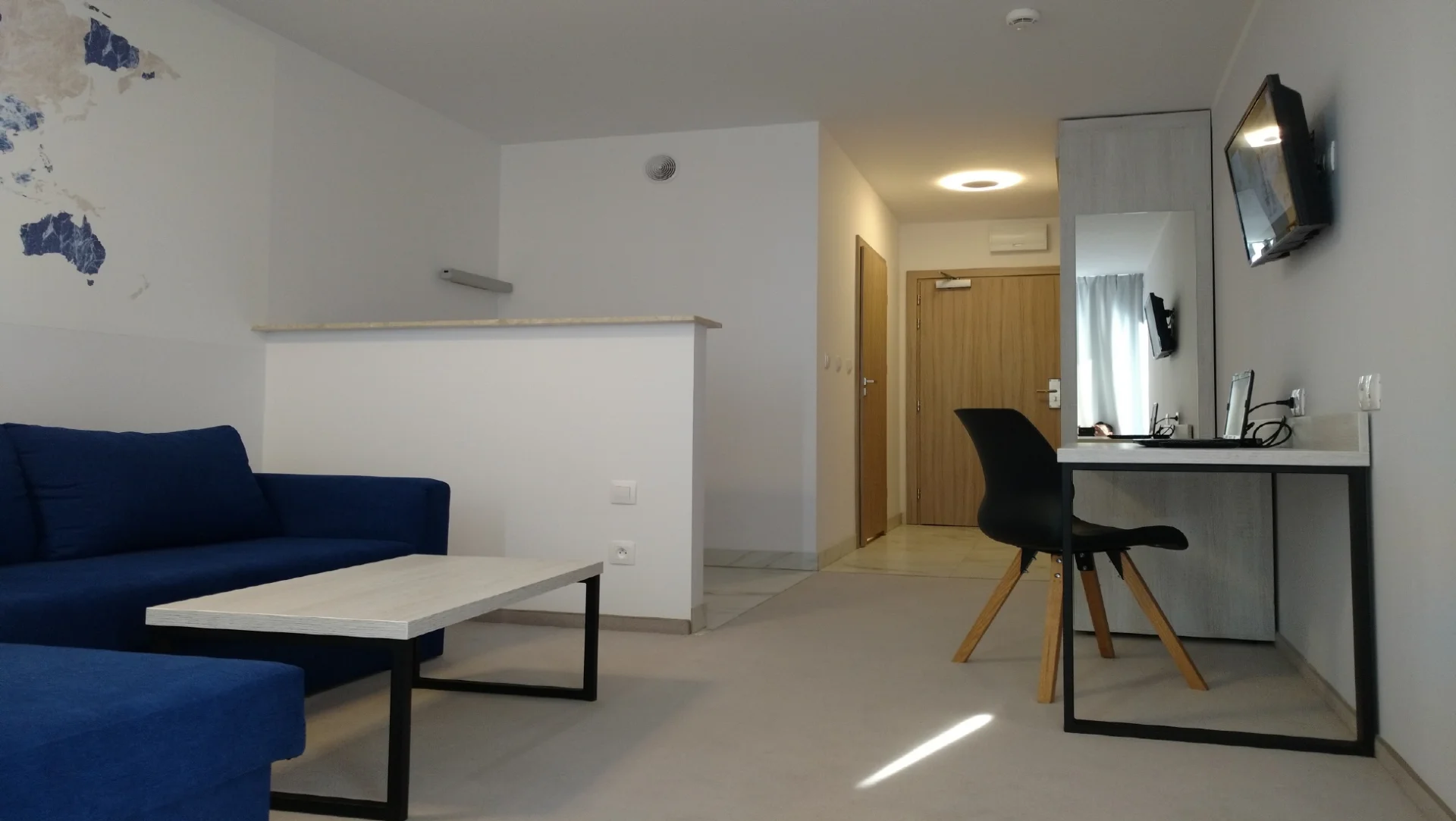 Jako jedyni posiadamy apartament z oddzielną zamykaną sypialnią, a także salon z rozkładanym narożnikiem dla dwóch osób, aneksem kuchennym, łazienką, przedpokojem i przestronnym balkonem z urzekającym widokiem na Jezioro Jamno.