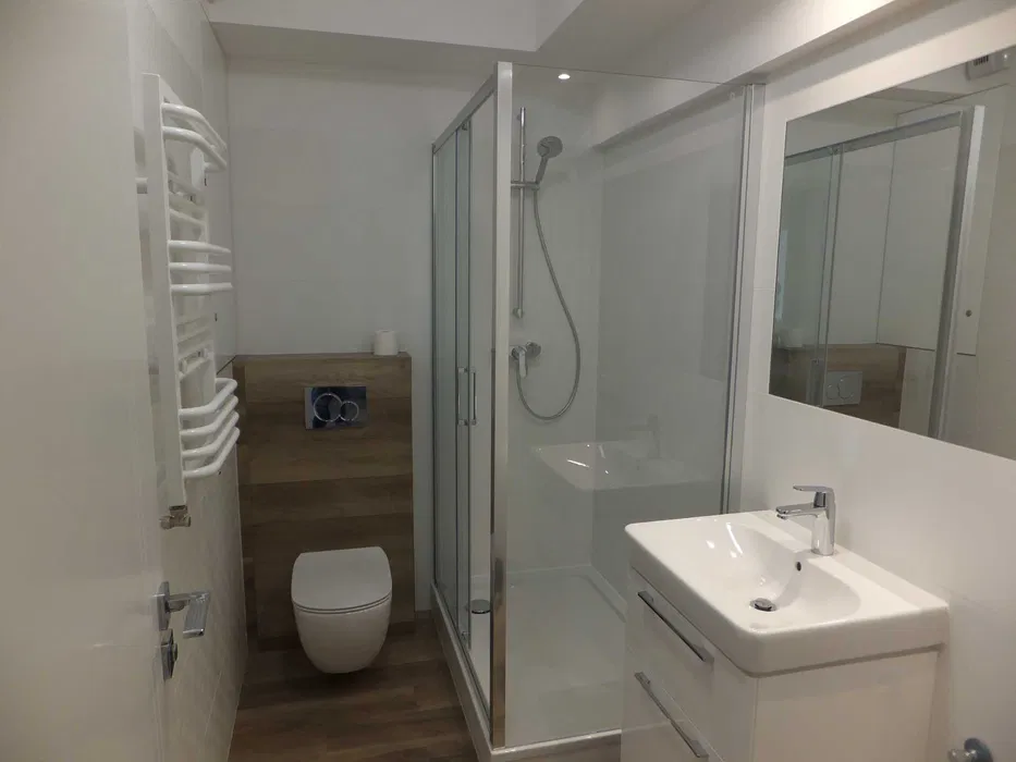 •kabina prysznicowa 80 cm x 120 cm, umywalka, WC, lustro