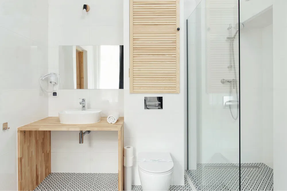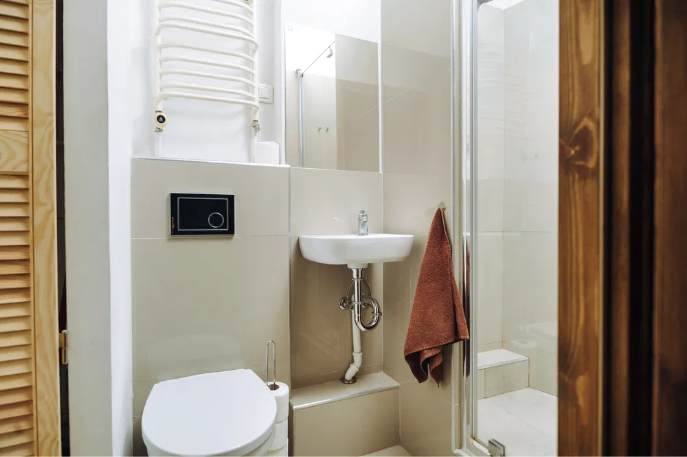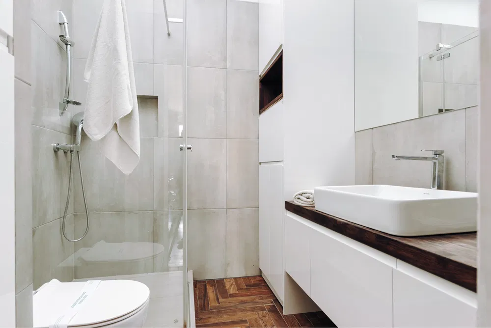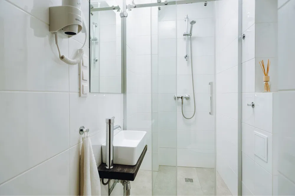 • Łazienka – nowoczesny prysznic, ręczniki i podstawowe kosmetyki