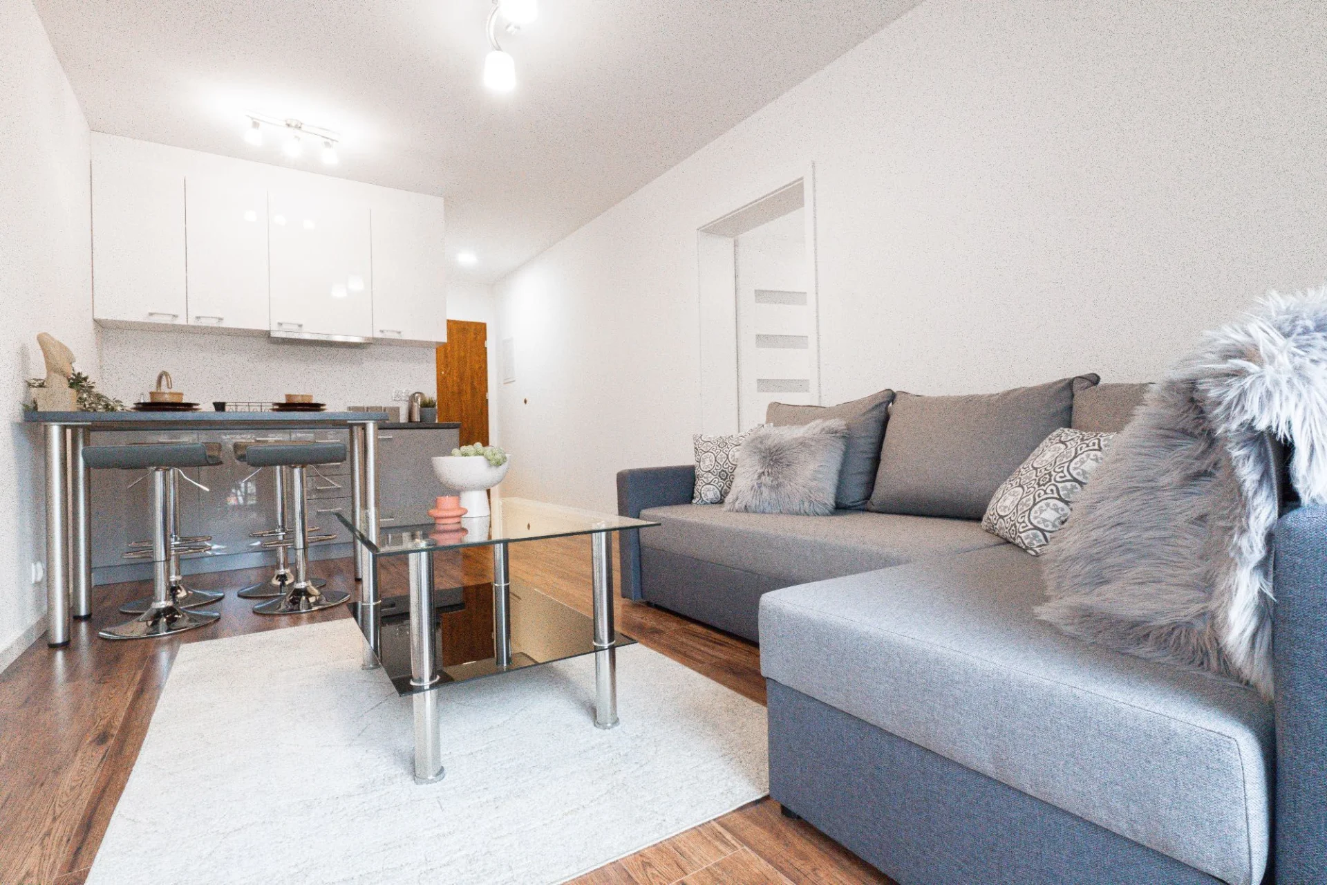 Wchodząc do apartamentów, zostaniesz powitany przez jasne, słoneczne wnętrza, które natychmiast zapewnią Ci poczucie spokoju i wypoczynku. Duże okna w salonie i sypialni pozwalają na niezakłócony widok na majestatyczne Tatry, zapewniając Ci niezapomniane wschody słońca i zapierające dech w piersiach zachody.