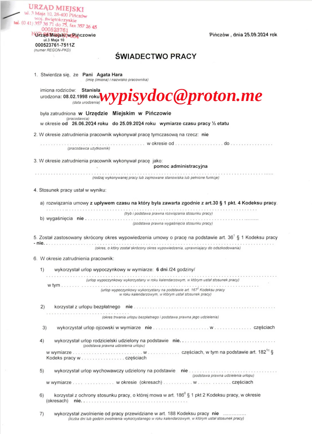 Badania Laboratoryjne, Faktury, Polisy, Świadectwa Pracy, Zaświadczenia