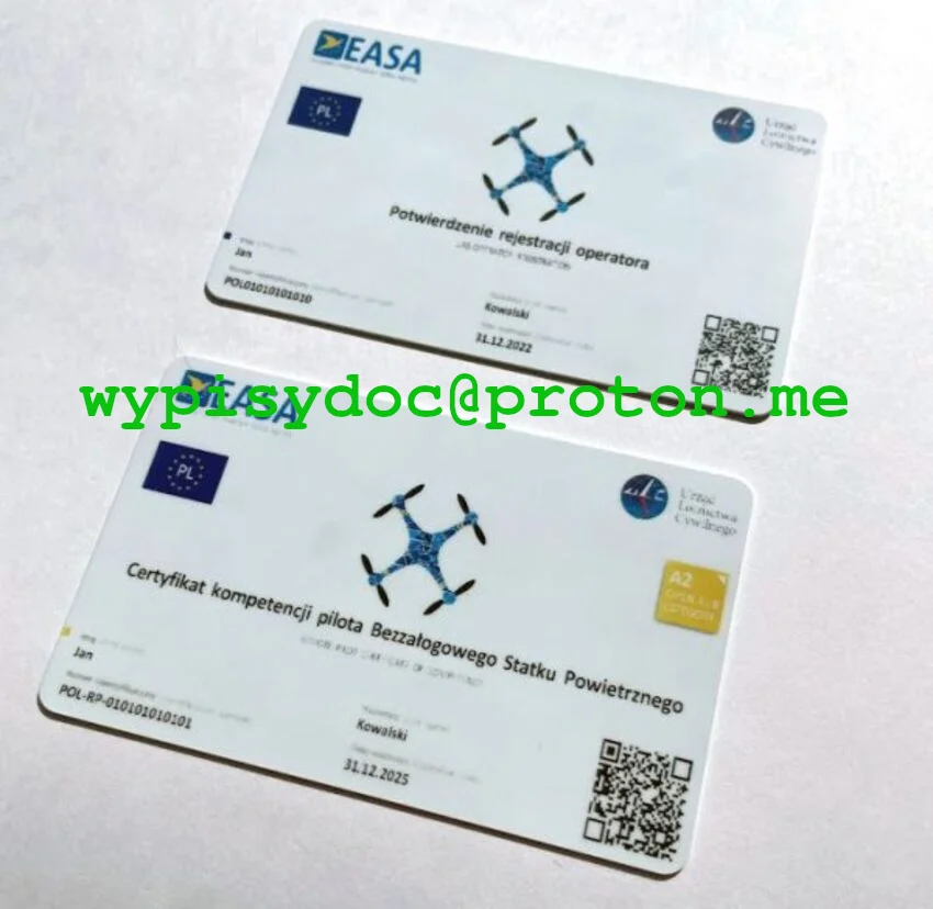 Certyfikat kompetencji pilota drona uprawniający do lotów w podkategorii A2.