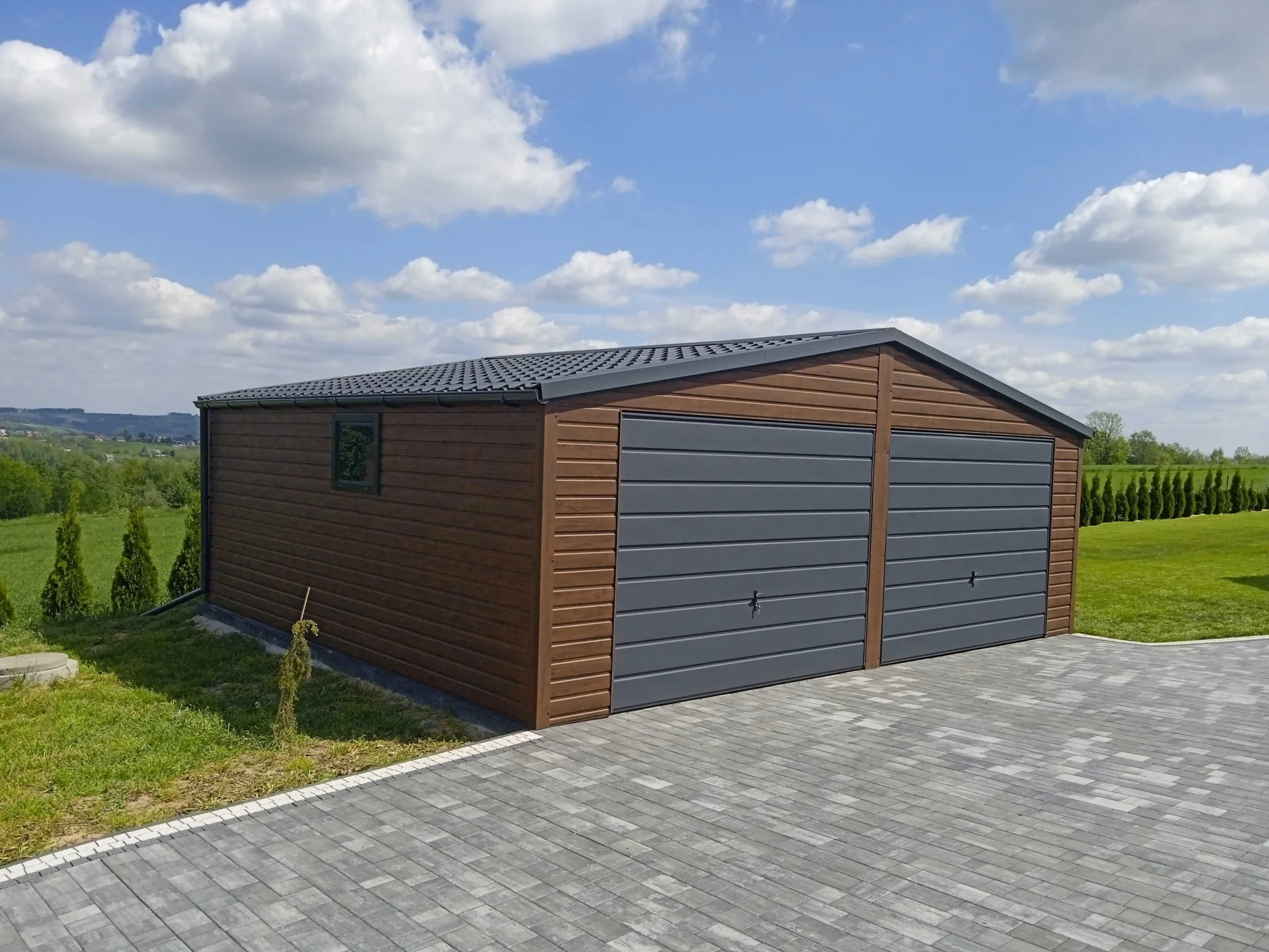 Garaż Blaszany 6x6 6x7 7x7 4x6 Blachodachówka Profil Garaże Okno Drzwi