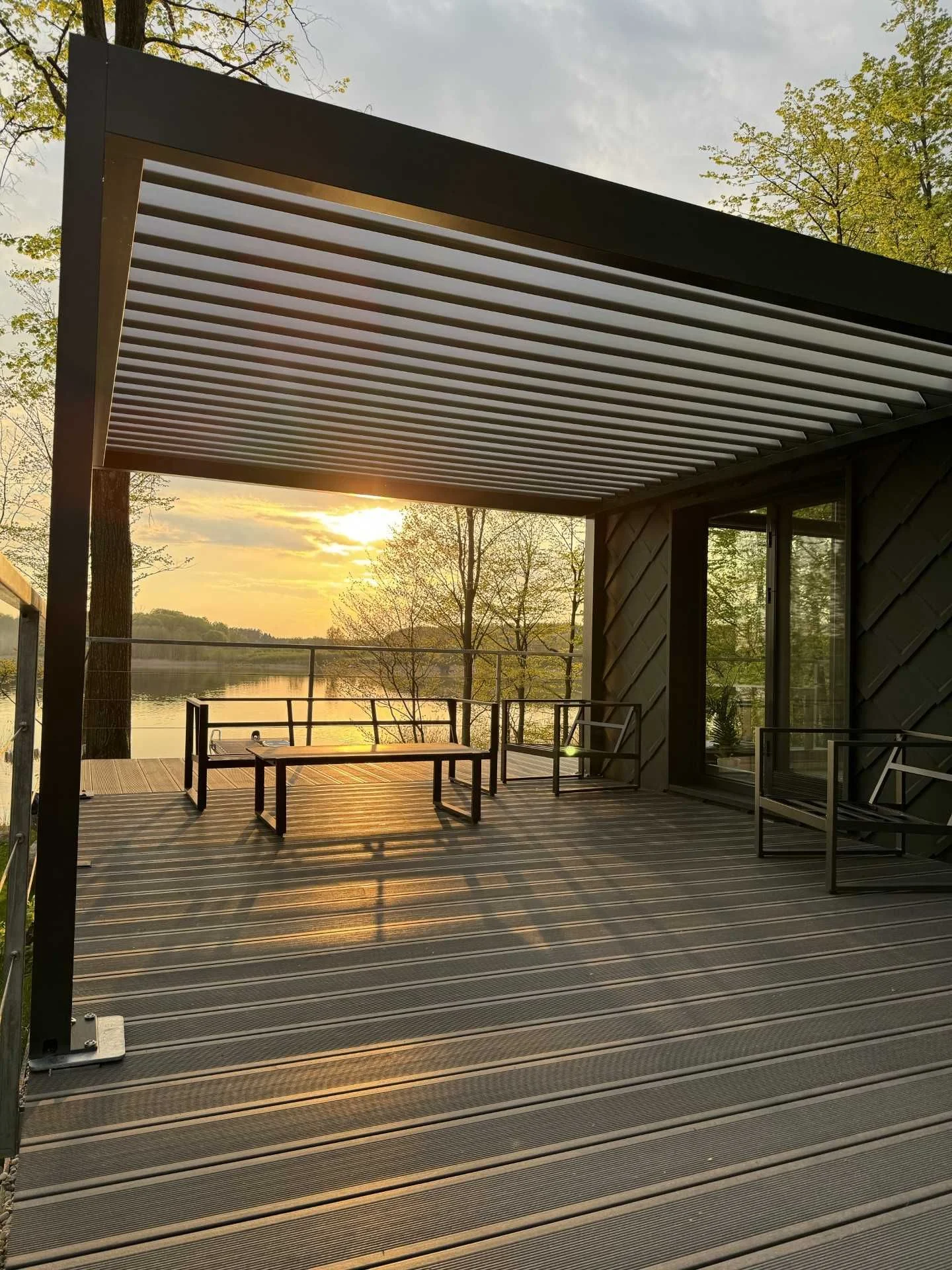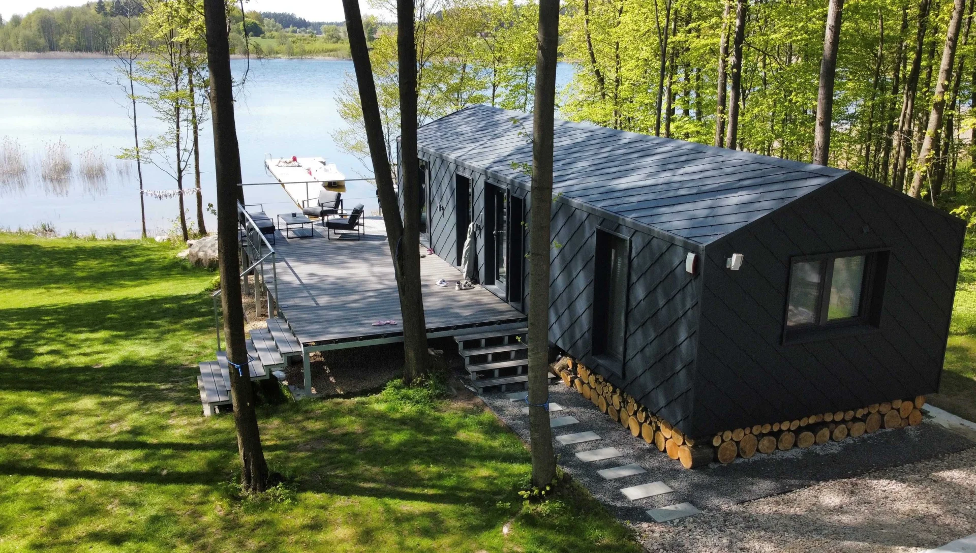 Przedmiotem niniejszego ogłoszenia jest pobyt w naszym nowym domku, ukrytym między drzewami, z pięknym widokiem na jezioro składającym się z: