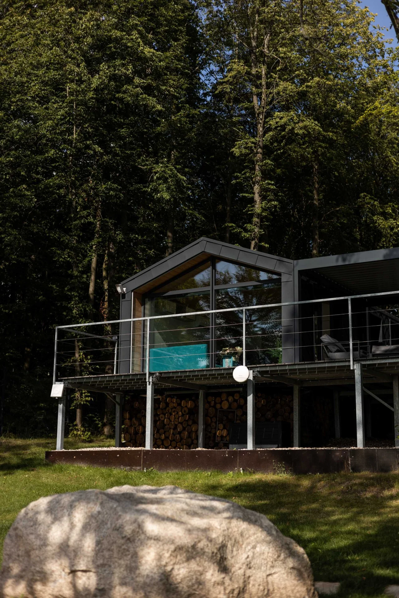 - 57m2 domek letniskowy ukryty wśród drzew z 50m2 tarasem,