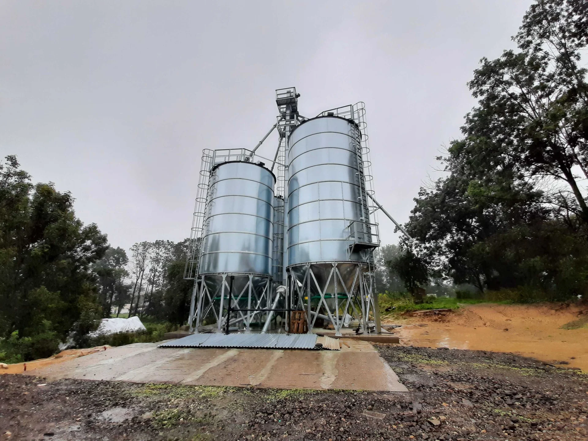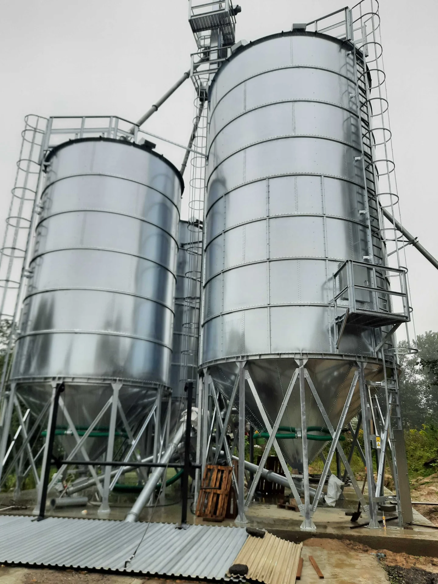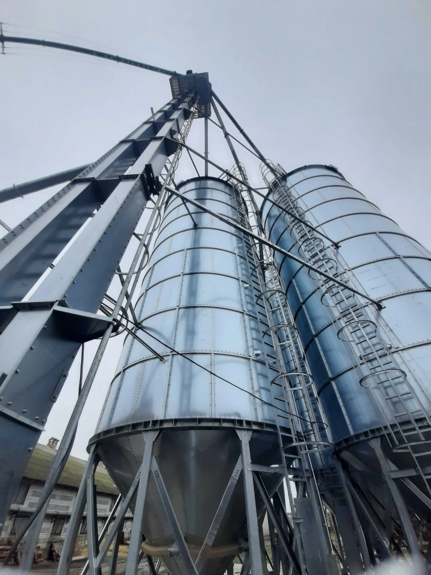 Wyposażenie standardowe: drabina zewnętrzna z uchwytami do montażu i poręczami zabezpieczającymi, zasuwa podsilosowa