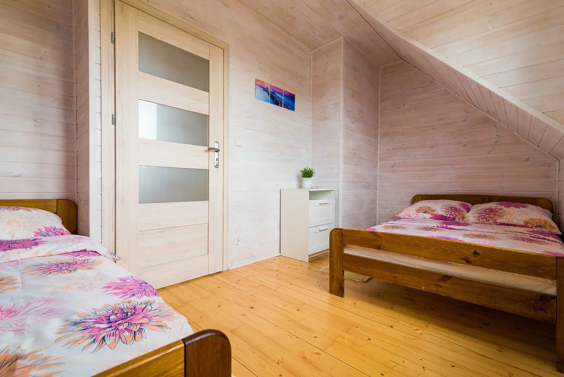 Na piętrze znajdują się dwie oddzielne sypialnie.