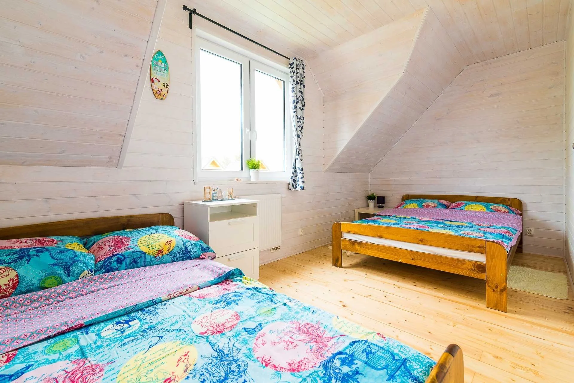 W każdej zapewniamy dwa podwójne łóżka.