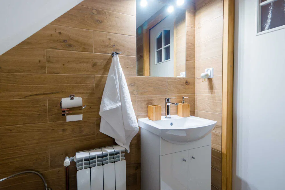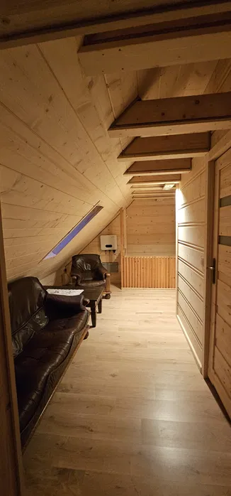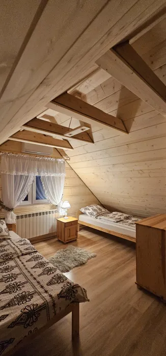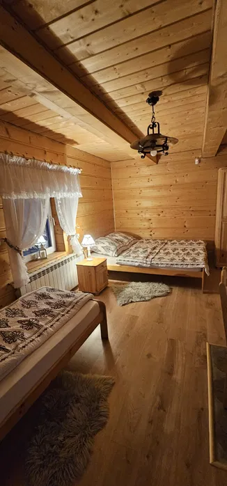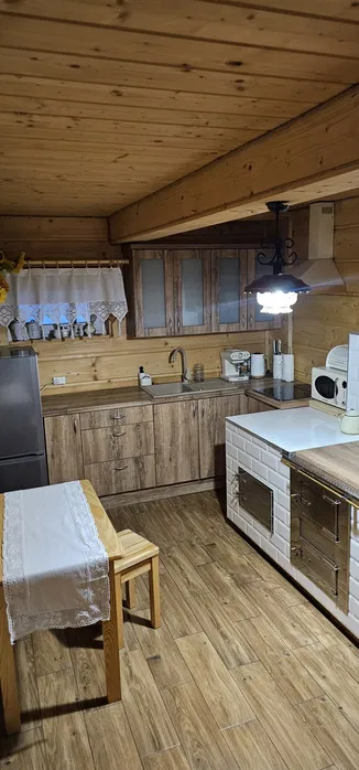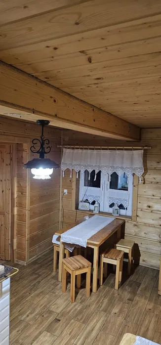 Chata jest w pełni wyposażona, tak aby niczego nie brakowało podczas pobytu. Do dyspozycji gości jest Wi-Fi, telewizor 55 cali, a w kuchni – mikrofalówka, ekspres do kawy, sztućce, talerze oraz wszystkie niezbędne naczynia i sprzęty. Kuchnia urządzona w tradycyjnym stylu „jak u babci” sprzyja wspólnemu gotowaniu i rozmowom przy stole.