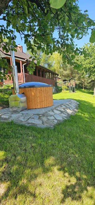 Dom oferuje 3 wygodne sypialnie, 2 łazienki, dużą salę biesiadną oraz przestronny, zadaszony taras. Po aktywnym dniu można zrelaksować się w jacuzzi i odpocząć w ciszy, z dala od miejskiego zgiełku.