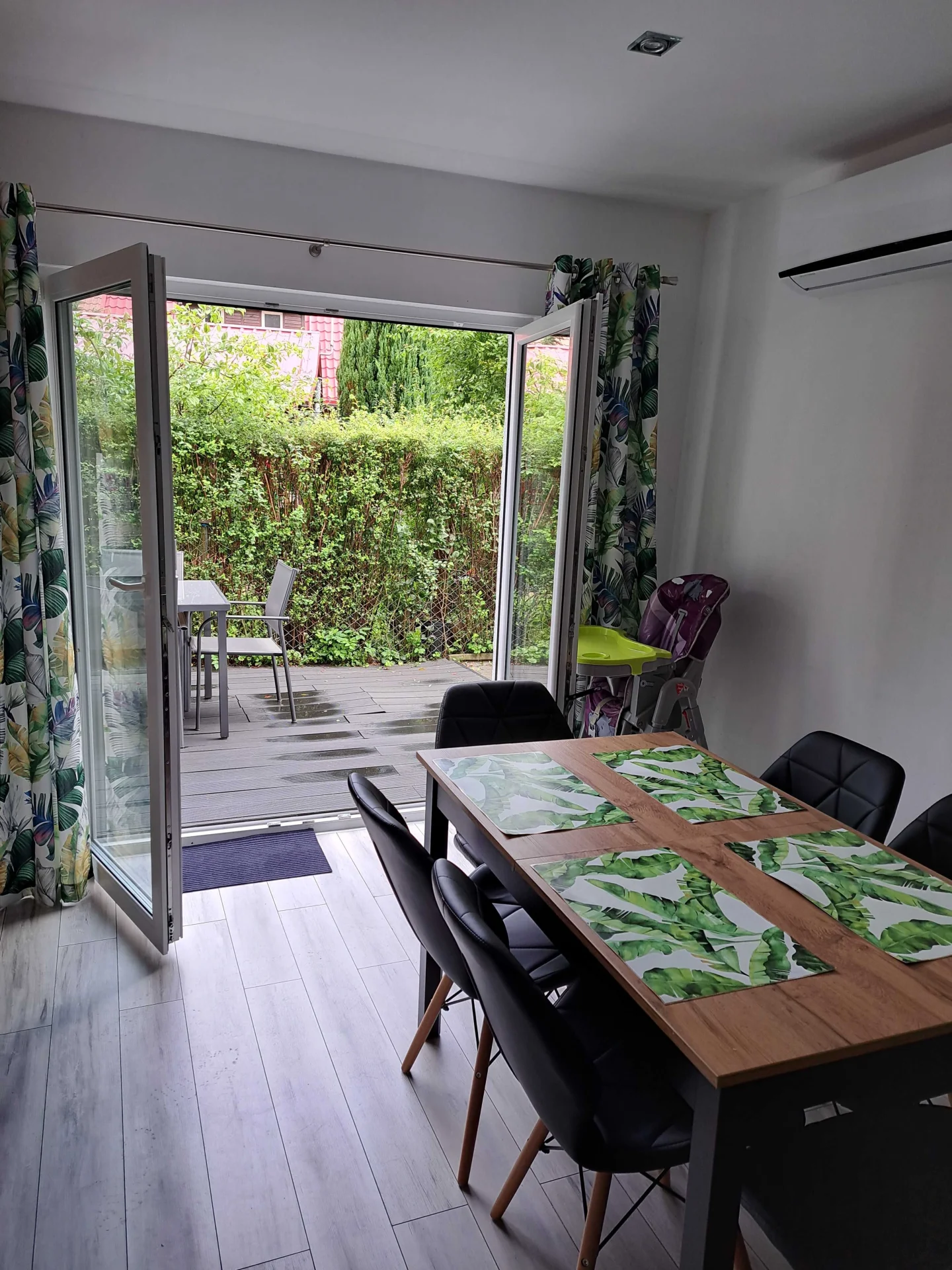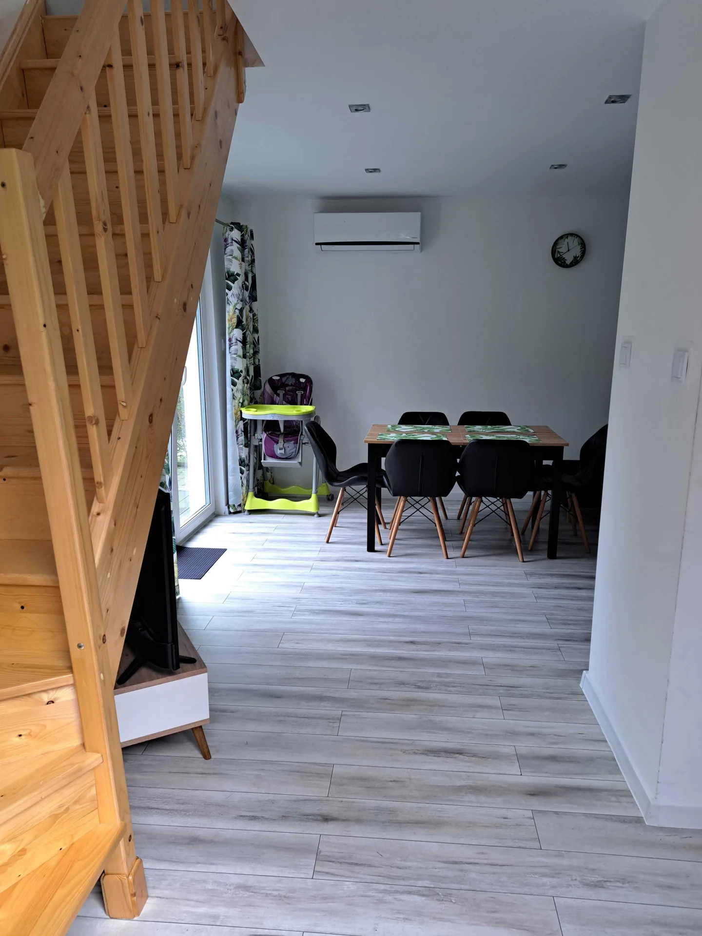 Domek posiada klimatyzację i ogrzewanie w każdym pokoju. Do dyspozycji Państwa jest również taras, na którym znajduje się stół i 6 krzeseł oraz grill.