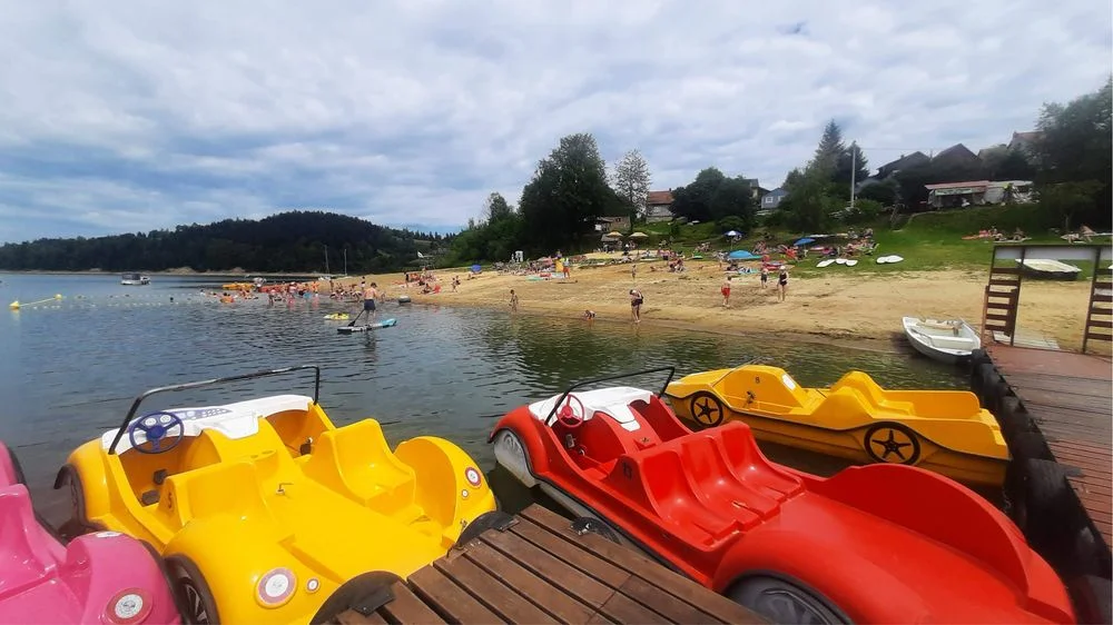 Godzina dziennie aktywnej zabawy na wodzie! Wybierz rowerek wodny lub kajak i odkryj uroki Jeziora Solińskiego.