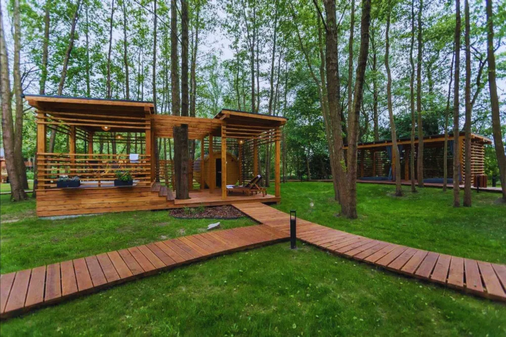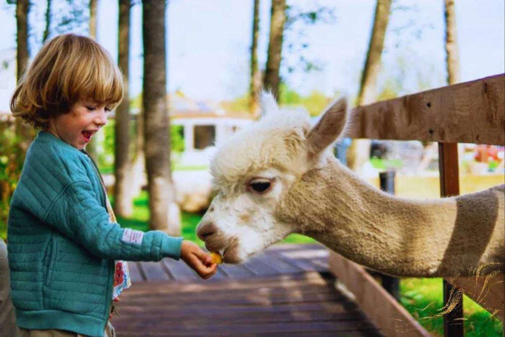 Prywatny park ze strefą do relaksu, minizoo z alpakami i alejkami do spacerowania, którymi można odbyć przyjemny poranny lub wieczorny spacer.