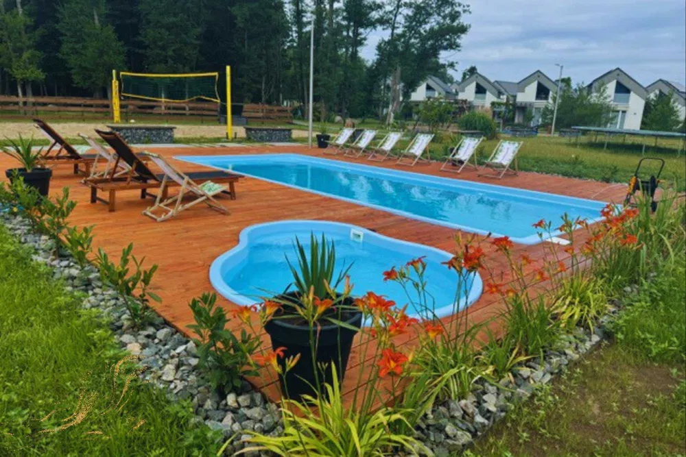 Letni basen z podgrzewaną wodą, zapewniający przyjemnie spędzony czas nawet w deszczowym dniu