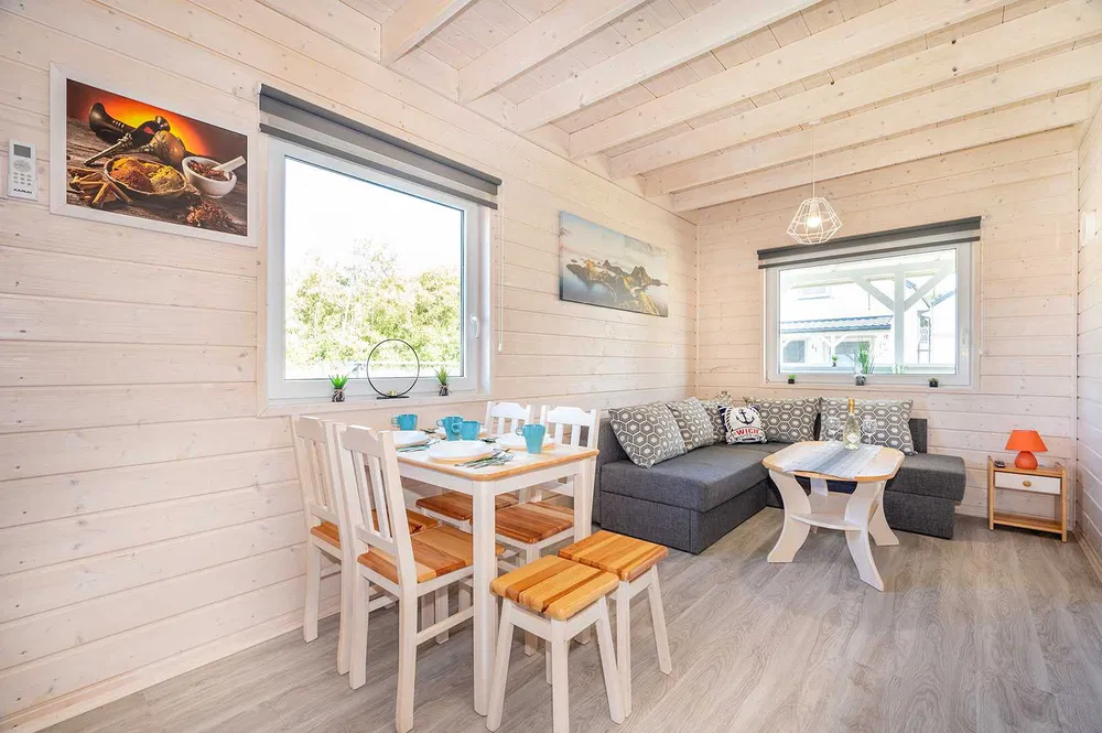 - komfortowe klimatyzowane 2-poziomowe domki letniskowe, zapewniające idealne warunki wypoczynku nawet dla 8 osób,
