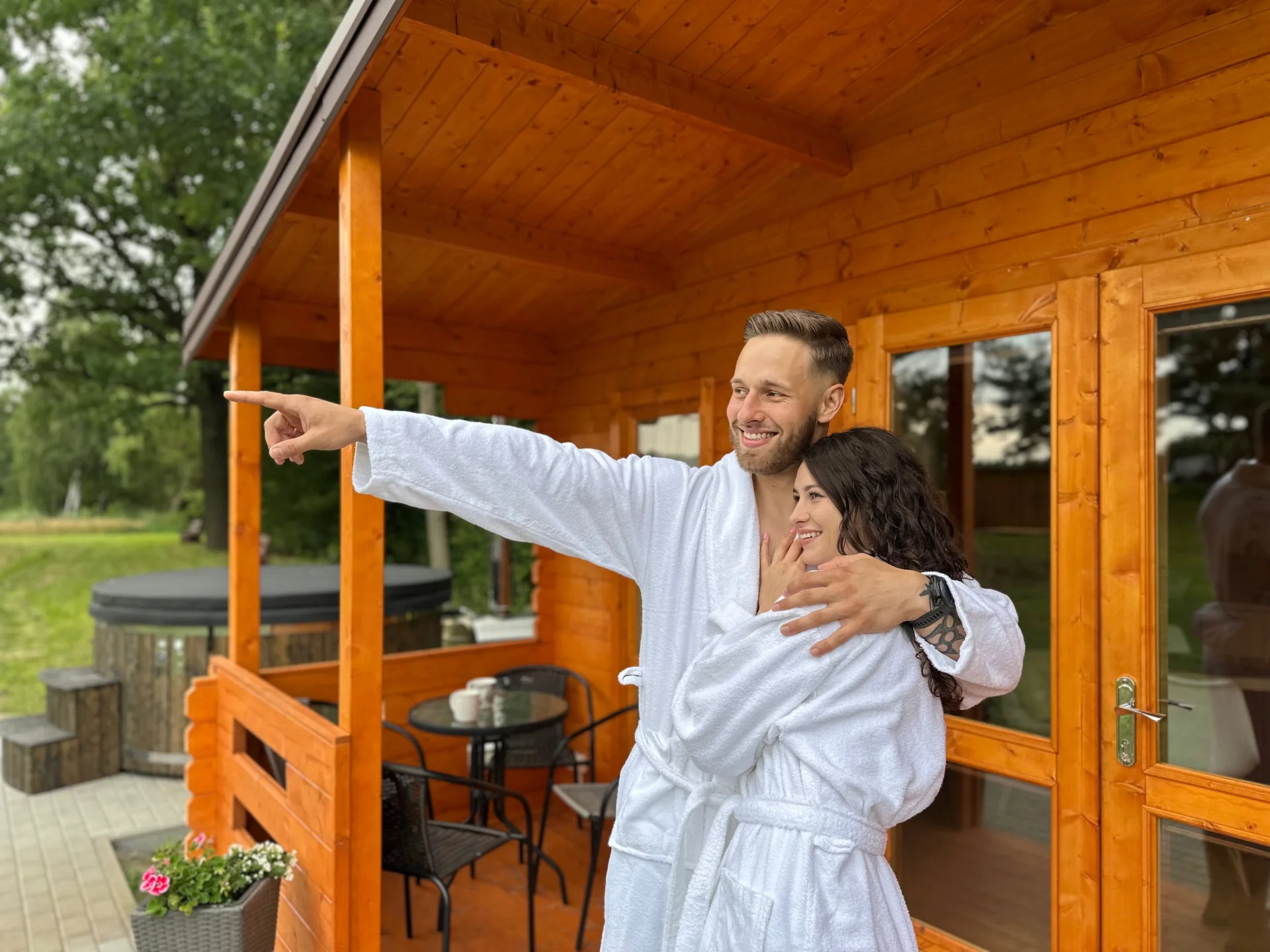 - nielimitowane kąpiele w całorocznej balii z funkcją jacuzzi, gorącą wodą oraz klimatycznym oświetleniem tylko dla Ciebie