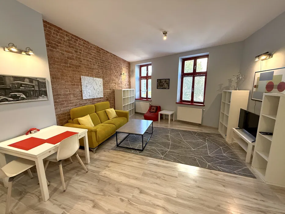 Oferuję do wynajęcia klimatyczne, dwupokojowe mieszkanie o powierzchni 50 mkw mieszczące się w budynku przy ulicy 1 Maja (obok ratusza). Lokal mieści się w świeżo wyremontowanej kamienicy.