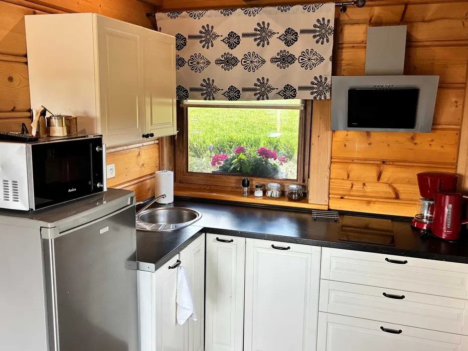 Komfortowe Domki 6-osobowe (+2 dodatkowe miejsca na kanapie w salonie), klimatyzowane i ogrzewane pompą ciepła (zimą 21-22°C), urządzone w stylu regionalnym.