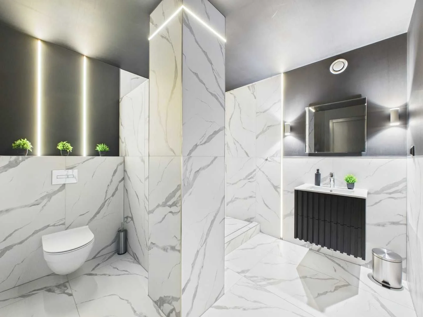 • Łazienka : nowoczesna, elegancka, z wysokim standardem wykończenia