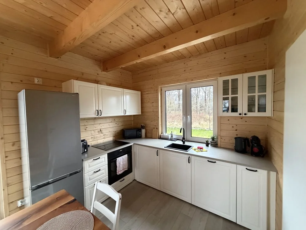 - Pełne wyposażenie: aneks kuchenny, lodówka, kuchenka, naczynia, TV, Wi‑Fi.