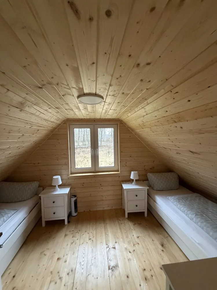 Oferujemy do wynajęcia przestronne, drewniane domki letniskowe (ok. 60 m², 2 poziomy) położone na dużej, ogrodzonej działce 1300 m² — zaledwie 500 m od malowniczego jeziora Kołczewo (rejon Osadników Wojskowych). Idealne miejsce na wakacje z rodziną lub grupą przyjaciół: cisza, natura i łatwy dostęp do atrakcji wybrzeża.