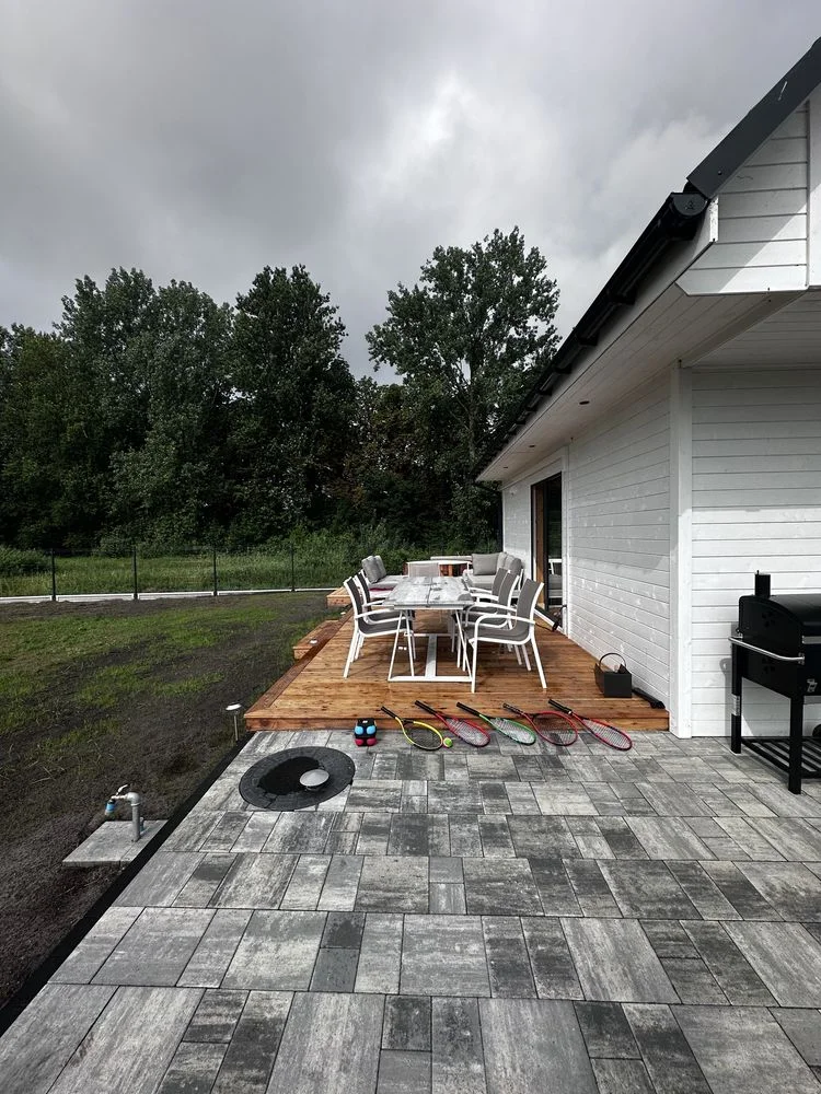 - Taras / miejsce do grillowania i wypoczynku na działce.