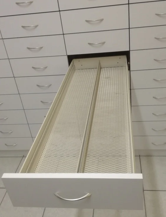 W pionie jest około 15-17 szuflad na łożyskach, szuflada wyposażona jest w przegrody i boczne opisy. Szuflady wystąpuja w głbokościach 0d 100-120cm oraz szerokości od 39, 5 do 42, 5cm.