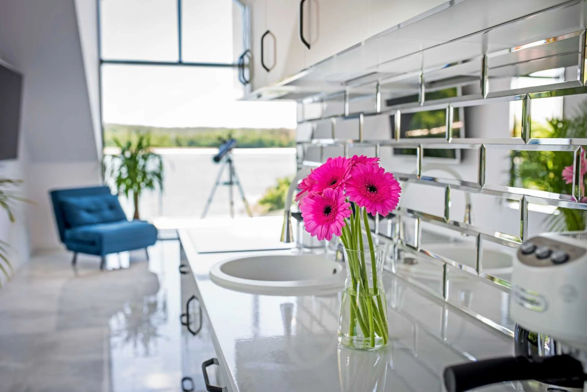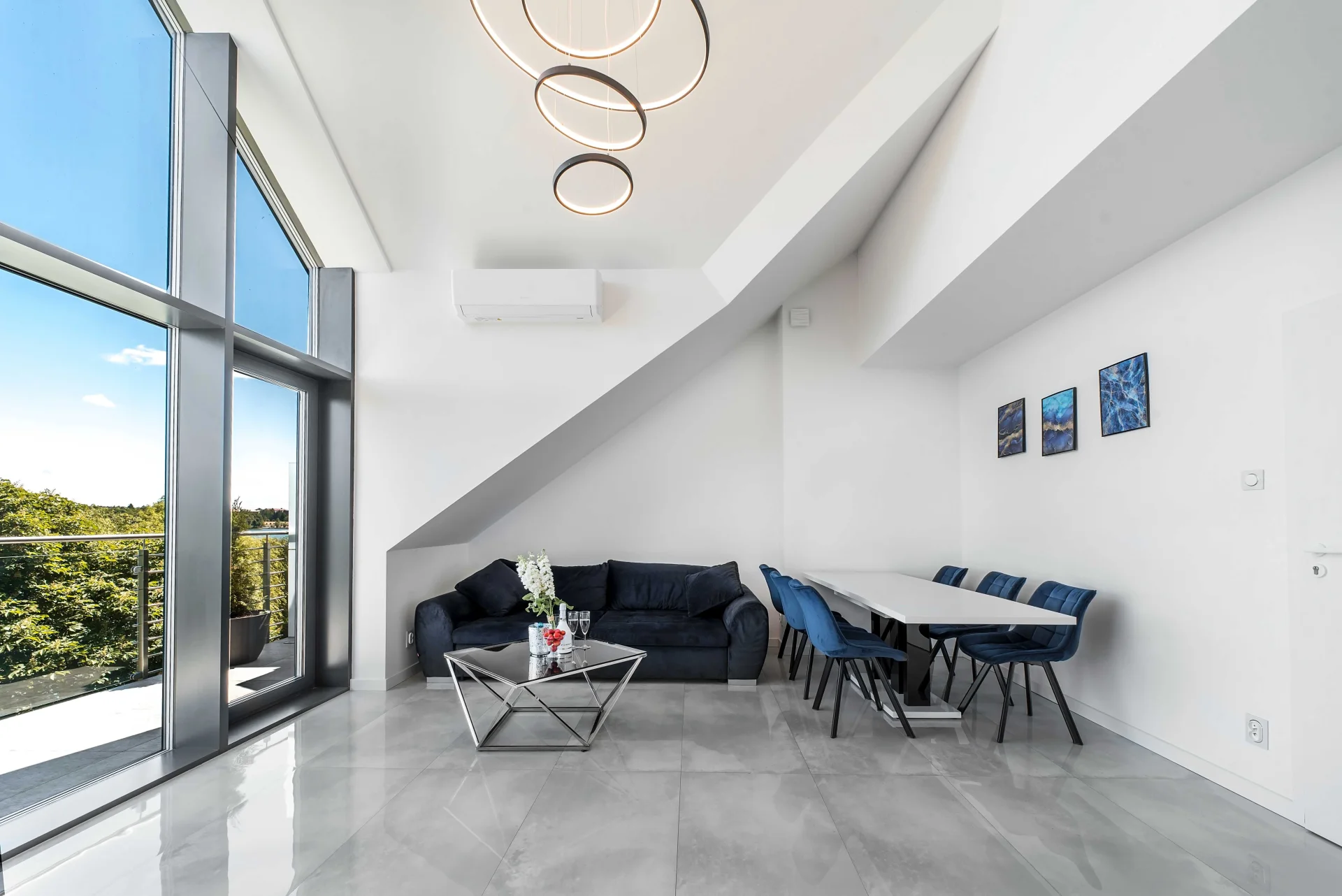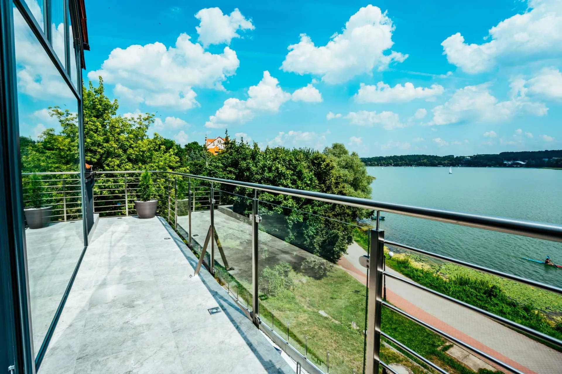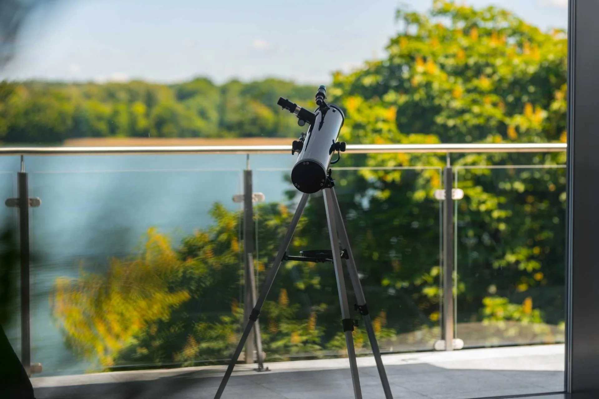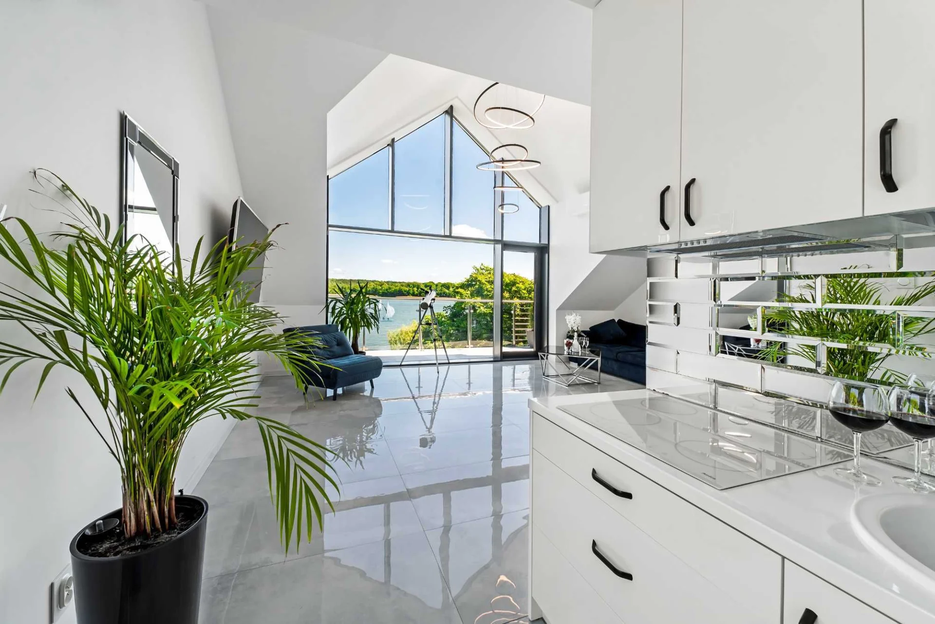 -Udogodnienia: sauna, jacuzzi SPA, Smart TV, Wi-Fi, widok na jezioro, okno o wysokości ponad 5 metrów z widokiem na jezioro, profesjonalny teleskop astronomiczny do obserwacji, ogród, bezpośrednie dojście do jeziora, możliwość wypożyczenia sprzętu wodnego, parking, garaż, żelazko, deska do prasowania