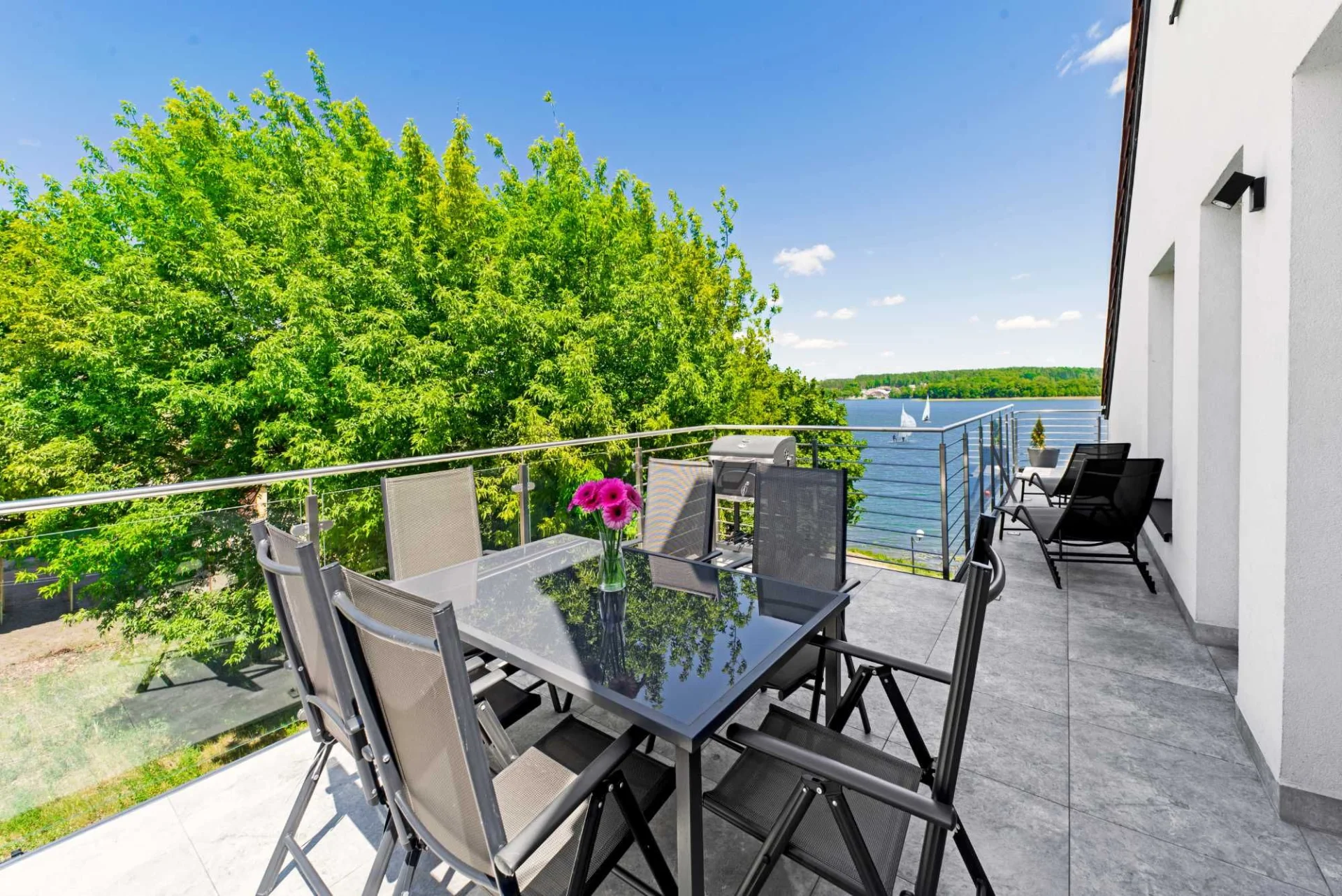 -Taras: stół, krzesła, leżaki, parasol, grill gazowy