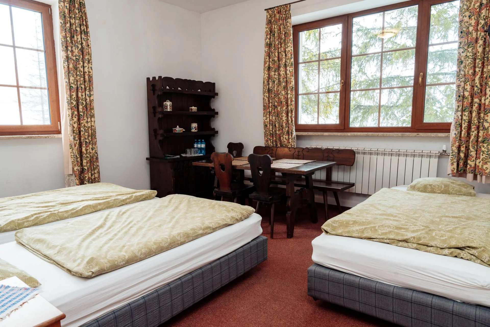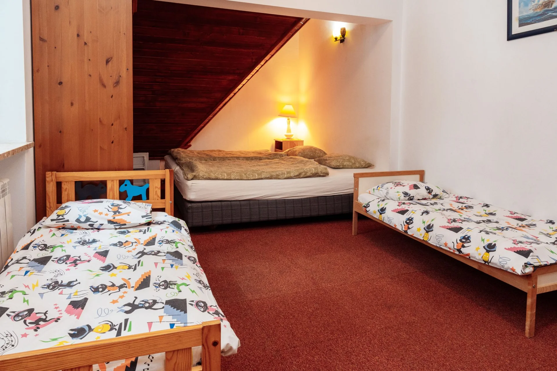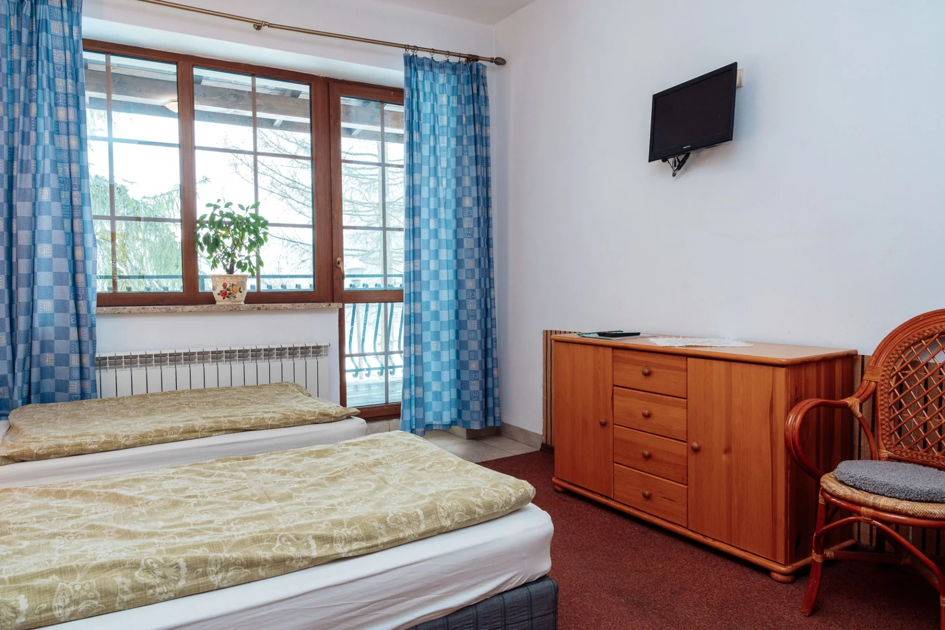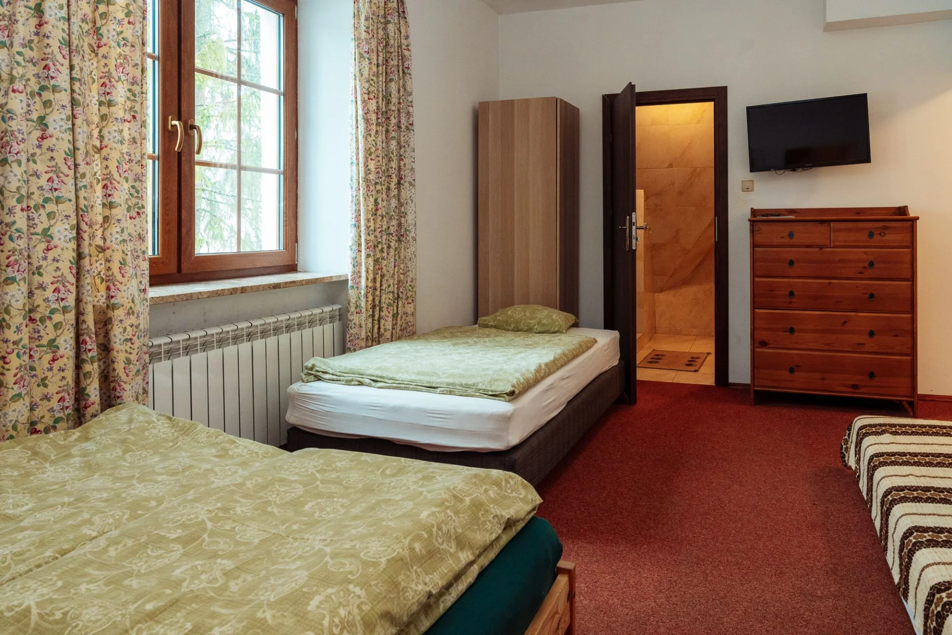 Oferujemy gościom komfortowe pokoje z łazienkami, wyposażone są w wygodne łóżka , TV, lodówki i czajniki elektryczne.