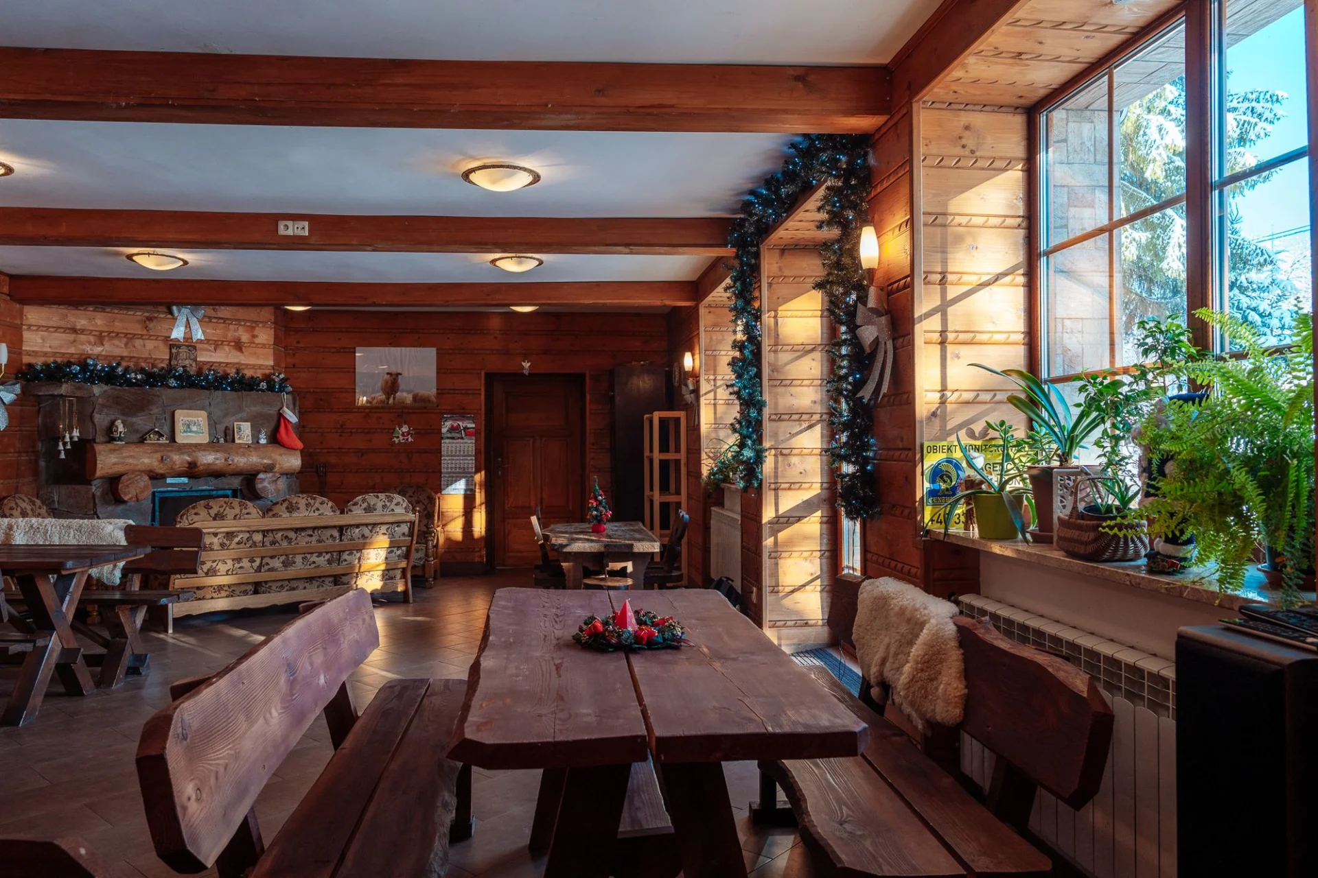 Dla gości dostępna jest sala jadalna kominkowa z kącikiem TV SAT ( NC+) oraz przestronna kuchnia z wyposażeniem gdzie można przyrządzić posiłki. Sala wypoczynkowa z kominkiem oferuje miejsce do gier i zabaw i wypoczynku ( książki , gry planszowe , zabawki , klocki , piłkarzyki ). 120 metrowy taras zapewnia miejsce do wypoczynku , relaksu przy zachodach słońca