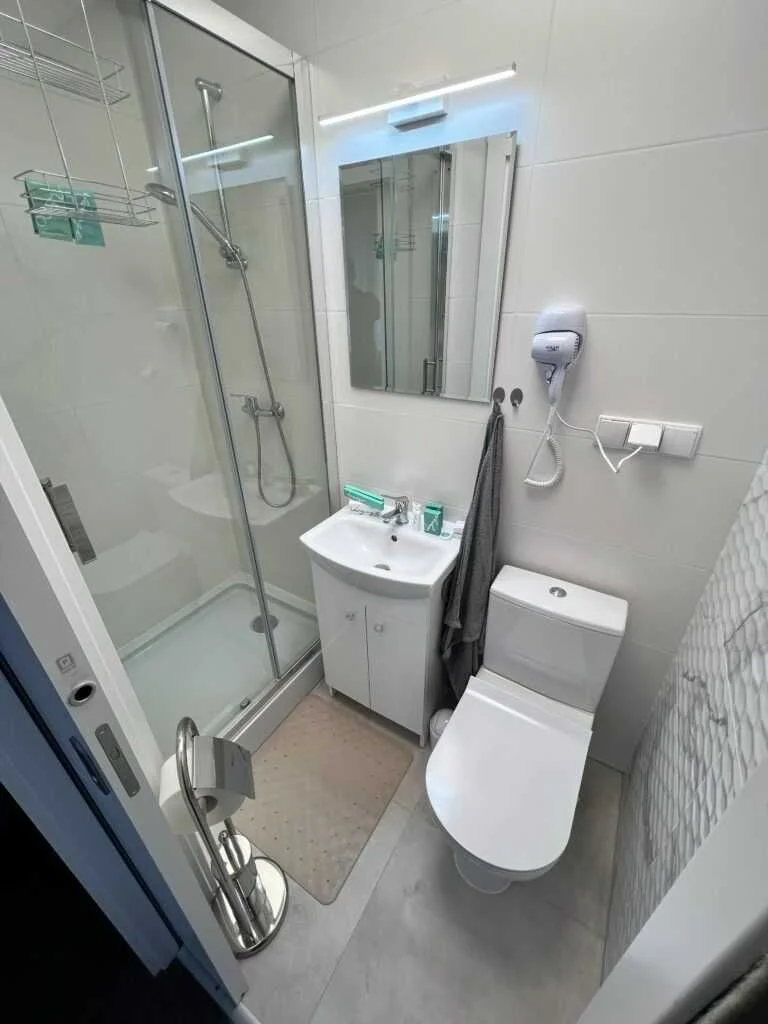 Każdy nasz pokój (2, 3, 4 i 5-osobowy) posiada własną, czystą łazienkę z prysznicem. W pokoju znajdziesz też wygodne łóżka, TV i szybkie Wi-Fi. Zapewniamy pościel, ręczniki i suszarkę!