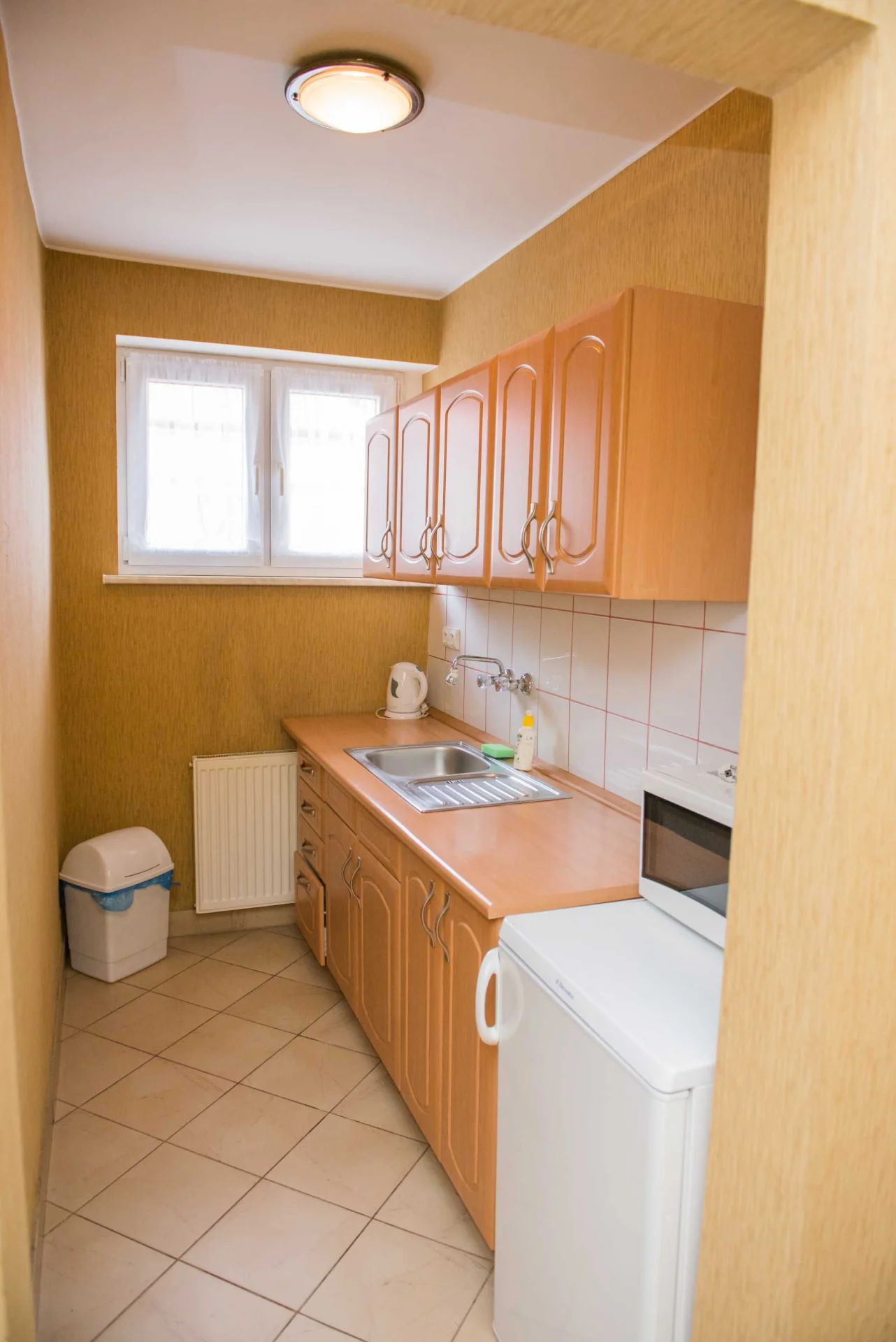 Pokoje 4, 5 lub 6 osobowe wraz z wyposażonymi aneksami kuchennymi, lodówkami, mikrofalówkami, płytami grzewczymi.