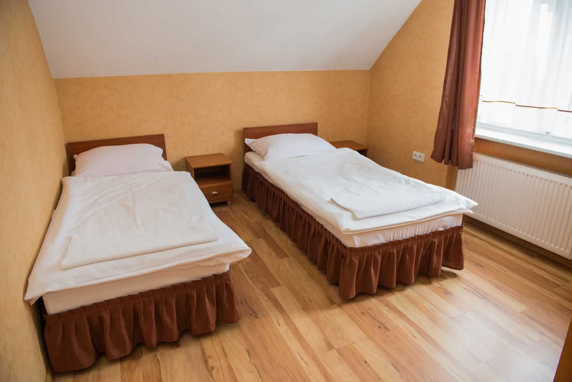 Na łóżkach świeża pościel i ręczniki.