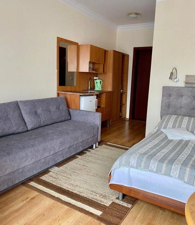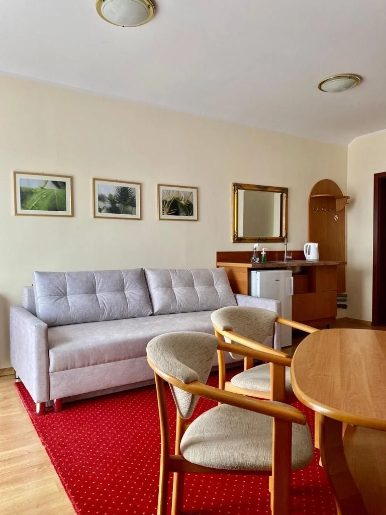 Zestawy dwupokojowe-sypialnia i pokój dzienny z aneksem kuchennym. Apartamenty znajdują się w górnej części budynku. Każdy apartament posiada samodzielny, przestronny taras ze stolikiem i fotelami