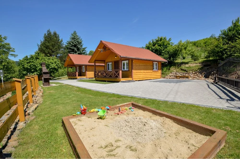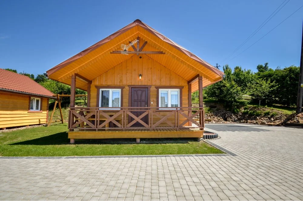 - dwa domki pięcio osobowe ( salon z aneksem kuchennym w pełni wyposażonym, tv, sypialnia łazienka, taras widokowy)