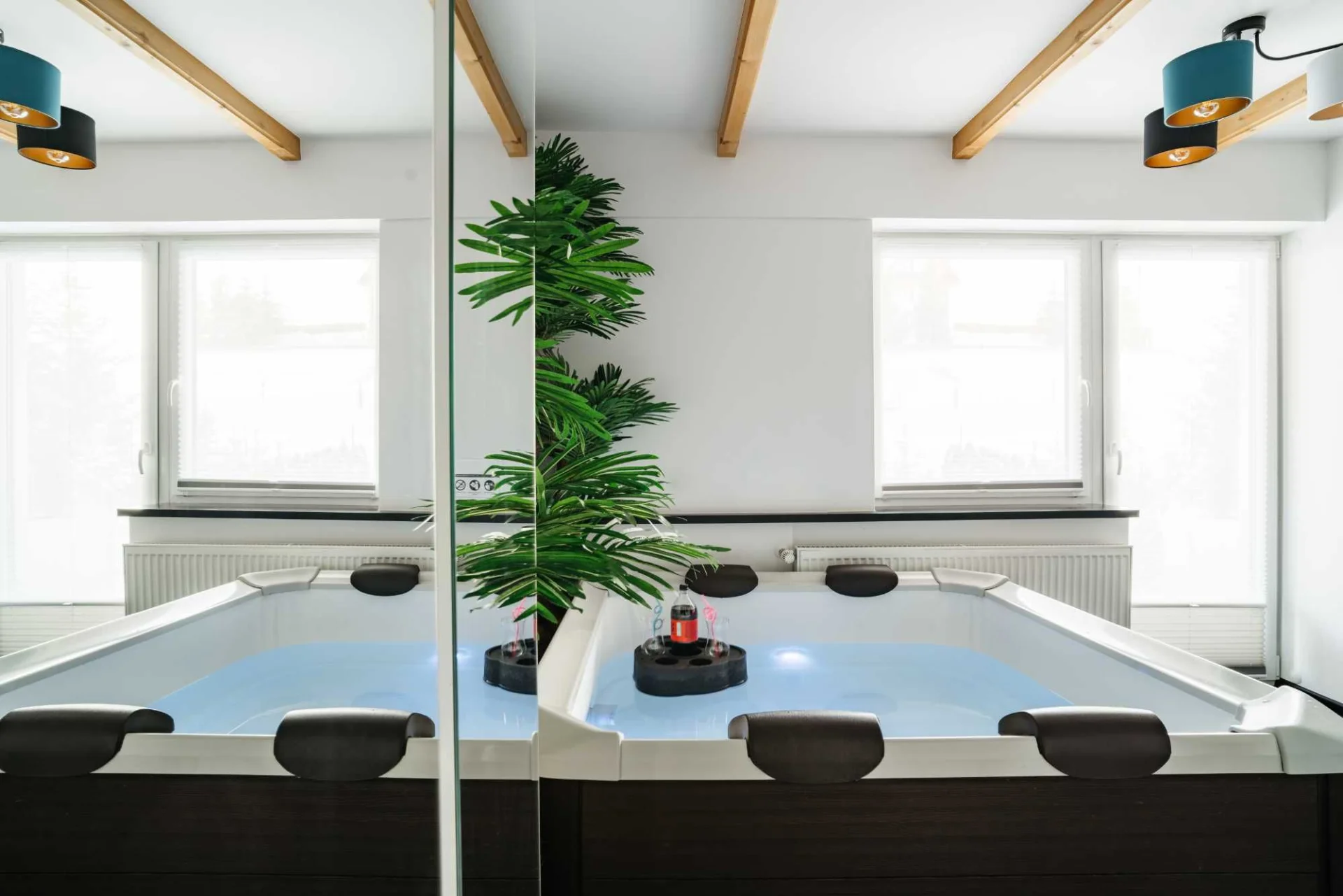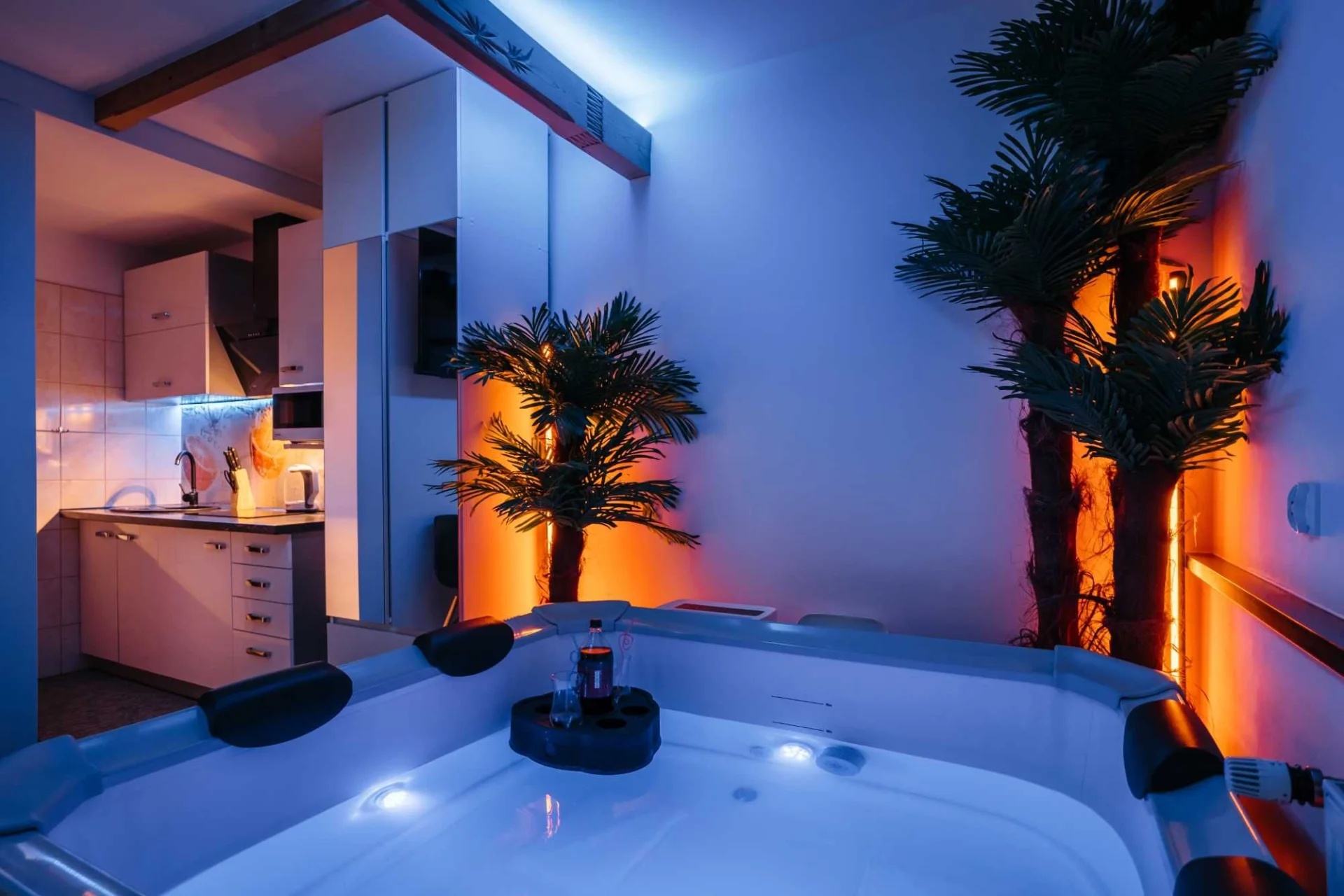 Oferta dotyczy mini apartamentu dla 2 osób widocznego na zdjęciach na wyłączność z prywatnym niezależnym jacuzzi w pokoju.